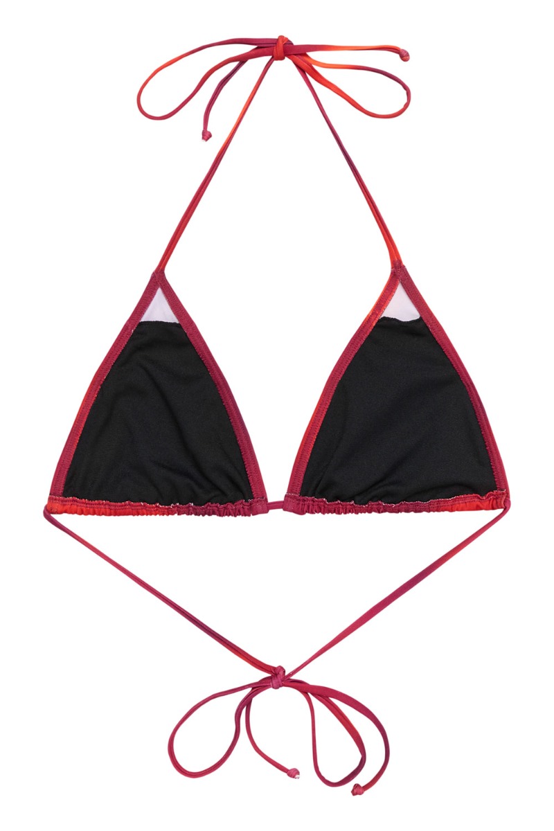 Gestuz har lavet det flotteste badetøj i de smukkeste rødlige nuancer. Bikini toppen er trekantet og snøres i nakken og bagpå ryggen. Den har aftagelig fyld og flot at style med matchende underdel.