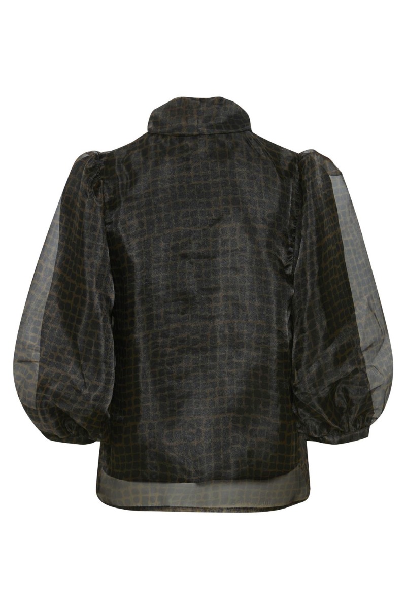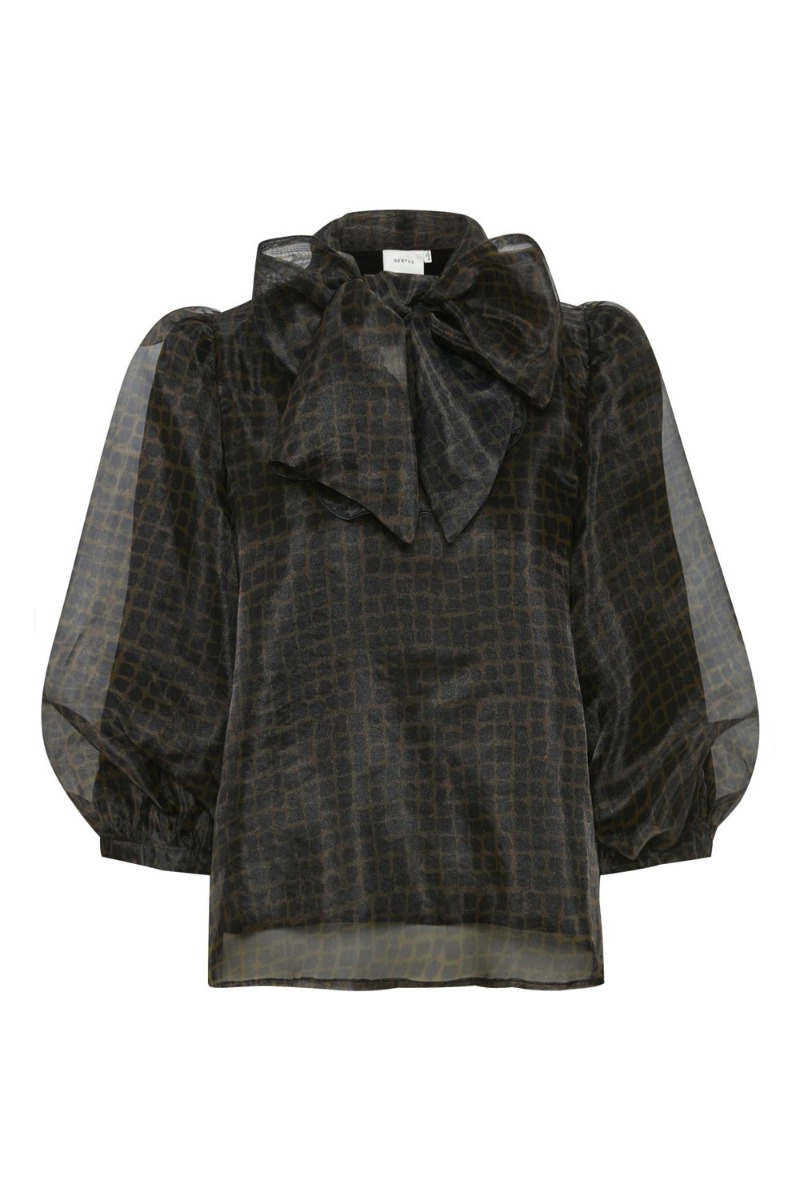 Waauuu.. En utrolig smuk bluse fra Gestuz der er oplagt til de kommende julefrokoster og fester. Blusen er lavet i et helt fint transparent materiale med et ternet mønster i brun og sort. Den er designet med bindebånd i halsen der giver en sød sløjfeeffekt foran og er super smuk med både nederdel og bukser.