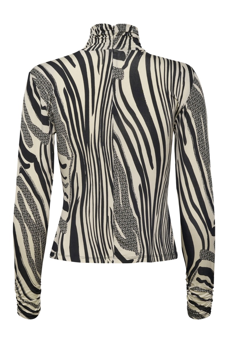 Vi ELSKER virkelig denne model fra Gestuz fordi den er designet med den populære rynkeeffekt i midten hvilket giver en super flot pasform som ikke sætter sig ind nogle steder. Blusen er i en let kvalitet der er behagelig på kroppen med lange ærmer og t-neck der lukkes med lynlås bagtil og skulderpuder. Style den enkelt med jeans eller til finere brug sammen med vores cindysus bukser og en stilet.