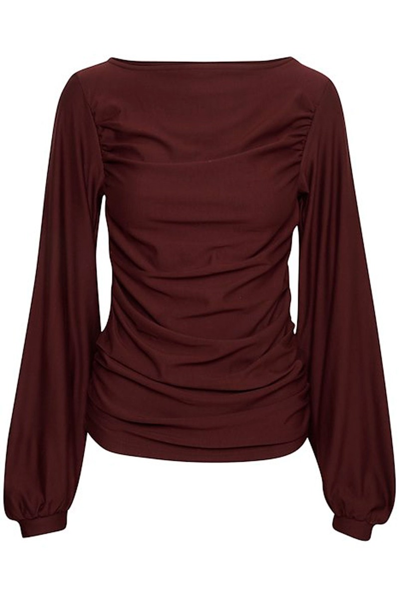 En lettere tætsiddende bluse fra Gestuz i den flotteste chokoladebrune farve! Blusen har rynkeeffekt foran og er lavet i det blødeste materiale, som bare gør den super dejlig at have på. Derudover har blusen de fineste ballonærmer, som er med til at give den et feminint look. Du kan både bruge denne bluse til en festlig anledning men også til hverdag med et par jeans eller en pænere habitbukser.
