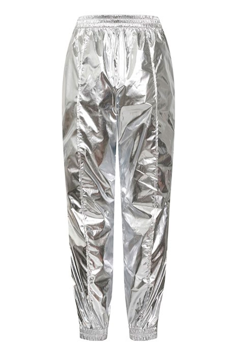 Sejeste cargobukser fra Gestuz i skinnende sølv. Et par mega cool og rå bukser i et vildt udtryk. De har et løstsiddende fit med elastikkant i taljen og så har den lynlås ned langs hele benet, så man har mulighed for at justere det efter eget ønske. Bukserne har de klassiske cargodesign med løst fit og bukselommer.