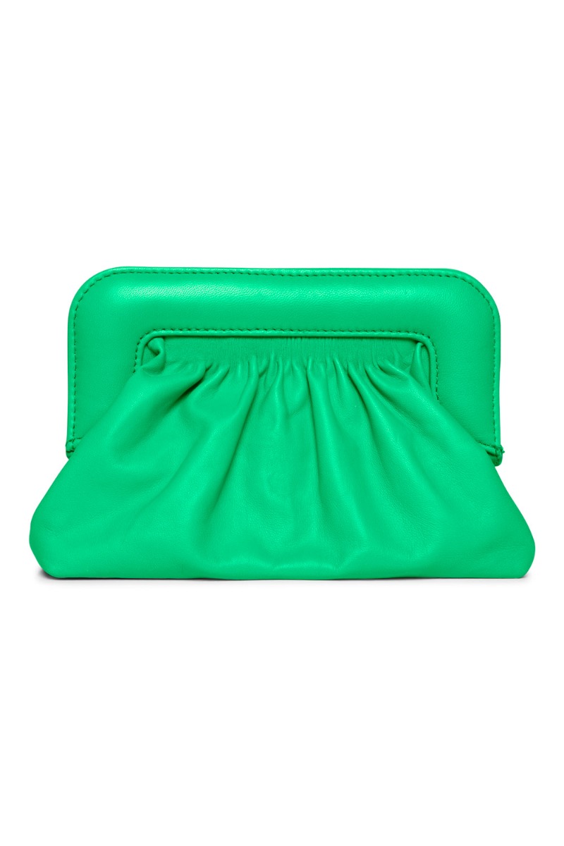 Smukkeste grønne clutch fra Gestuz i fårelæder der gør den utrolig blød i kvaliteten. Tasken har ingen stropper og lukkes med usynlig magnet lukning. Det store rum har et lille lynlås rum indvendigt til dine nøgler og små nips. En clutch der er perfekt at style til festlooket.
