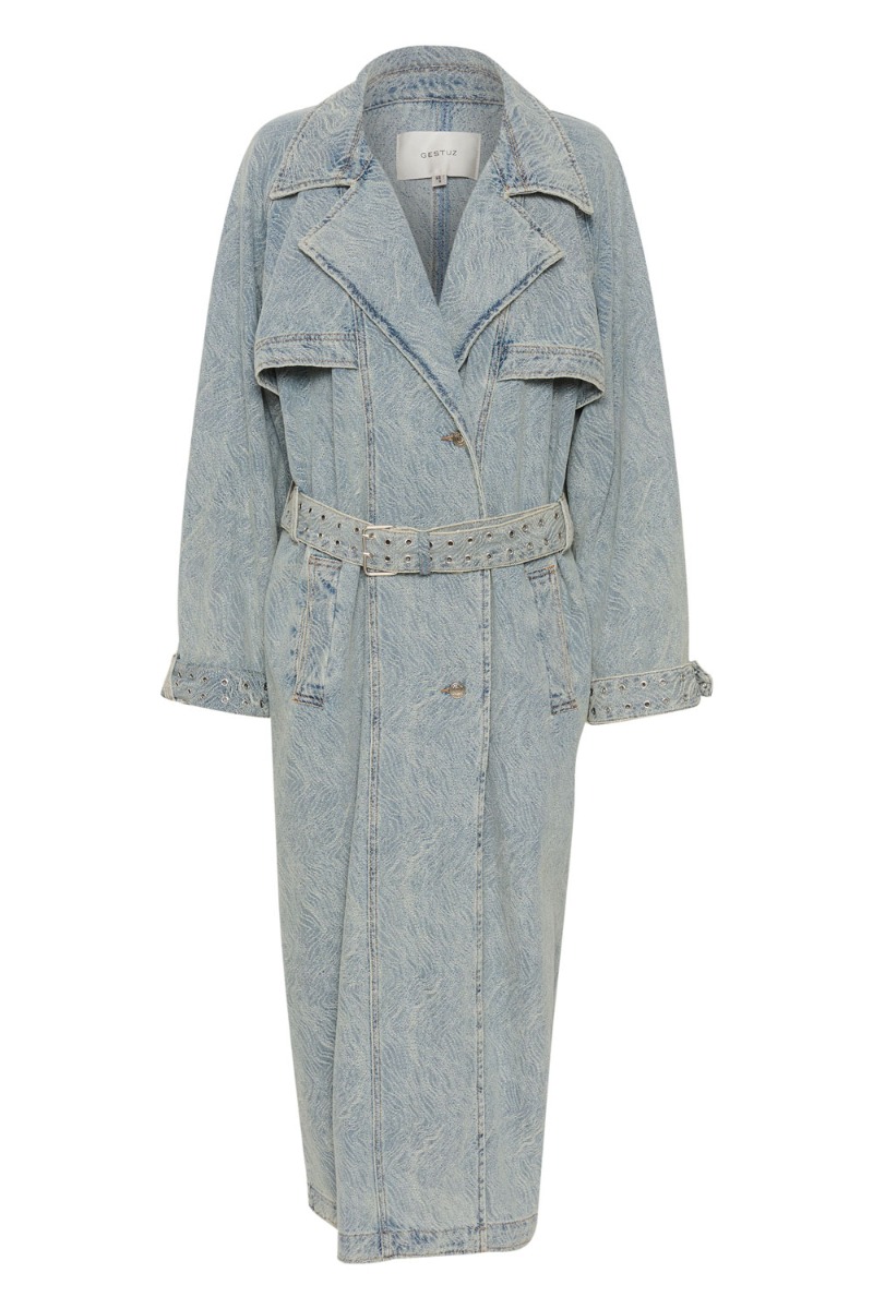Gestuz - Jakke - GiannaGZ Trenchcoat - Blue/White Marble