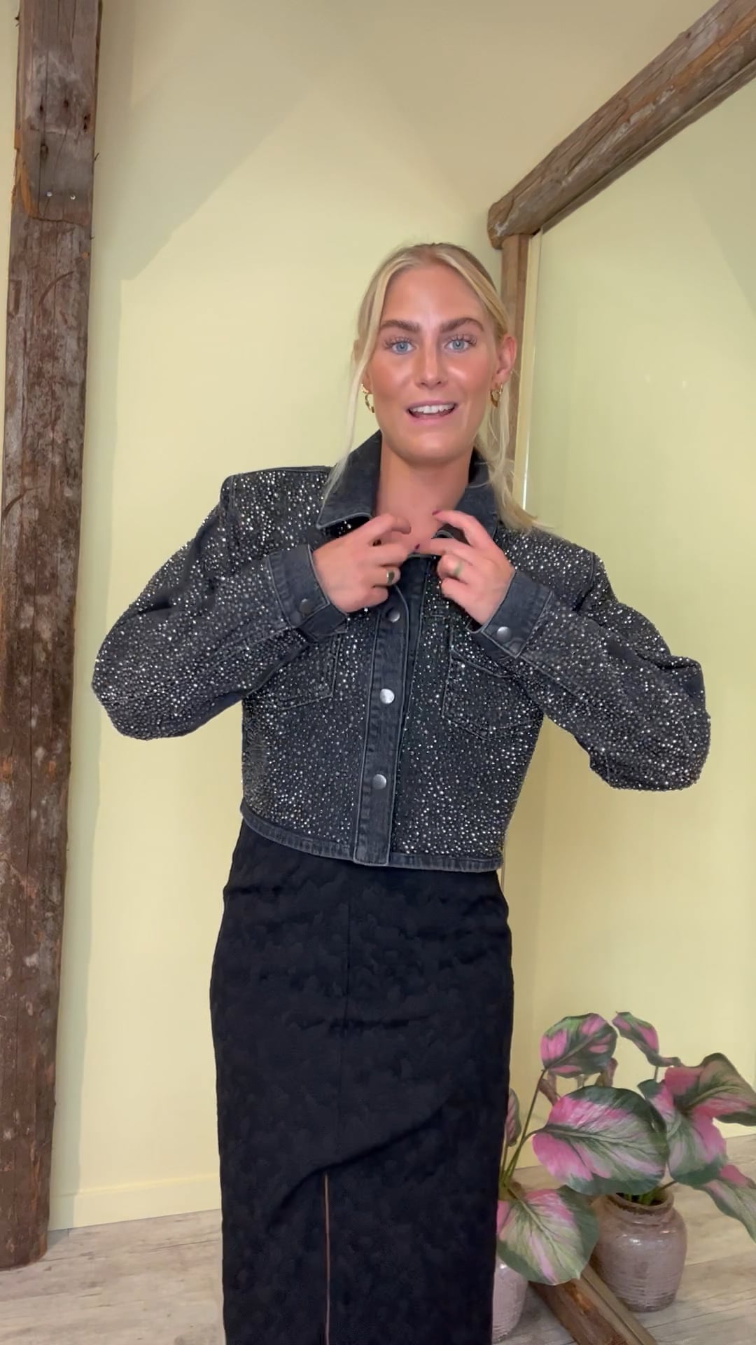 WAUW, vi er ved at falde bagover denne seje denimjakke fra Gestuz der er dekoreret med de fineste sten der virkelig bare glitre som dagen er lang. Jakken er i en kort model med trykknapper foran og beriget med aftagelig skulderpuder, hvilket gør det super smart alt efter hvad man er til. Style jakken over en feminin kjole for et mere råt udtryk eller til et par jeans.