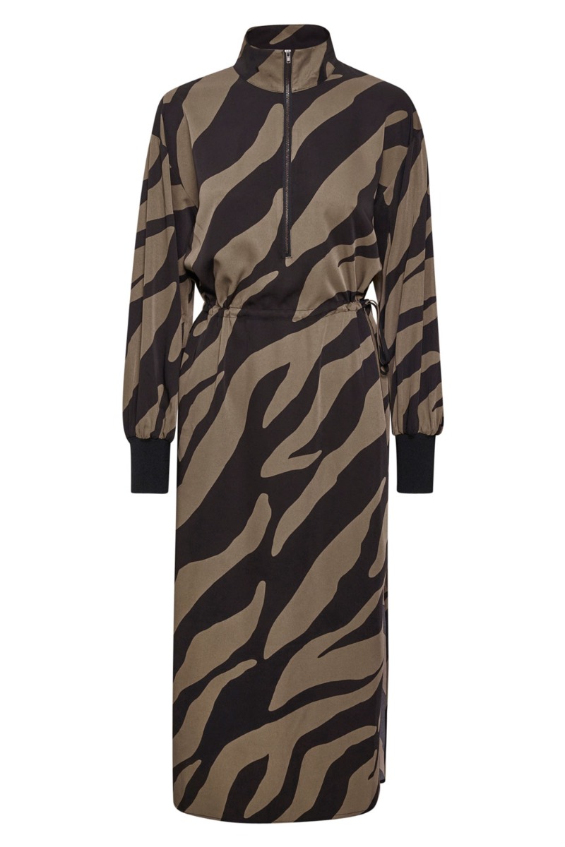 Bothilde kjole fra Gestuz er kommet i det velkendte zebra mønster. Den er genial når du skal føle dig cool, feminin og behageligt tilpas på samme tid. Denne kjole er virkelig bare en éner.