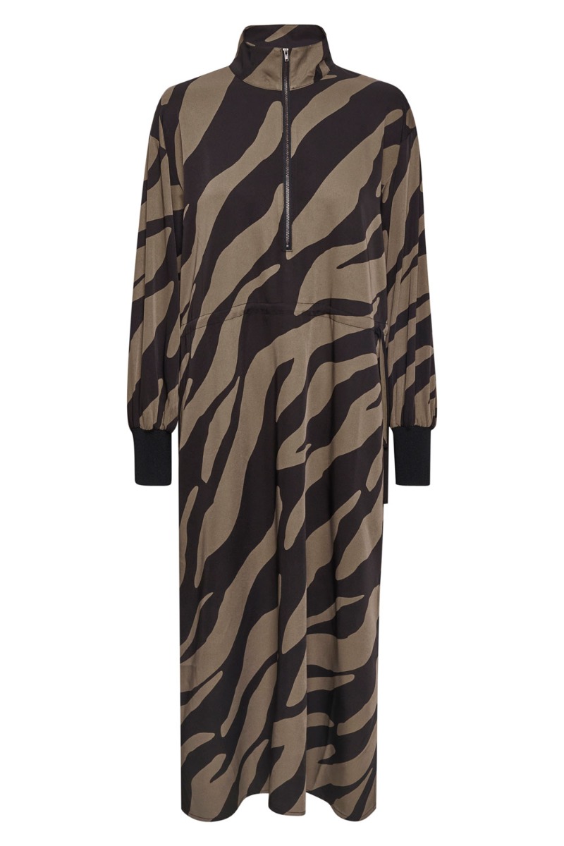 Gestuz - Kjole - Bothilde Midi Dress - Maxi Zebra Black/Walnut