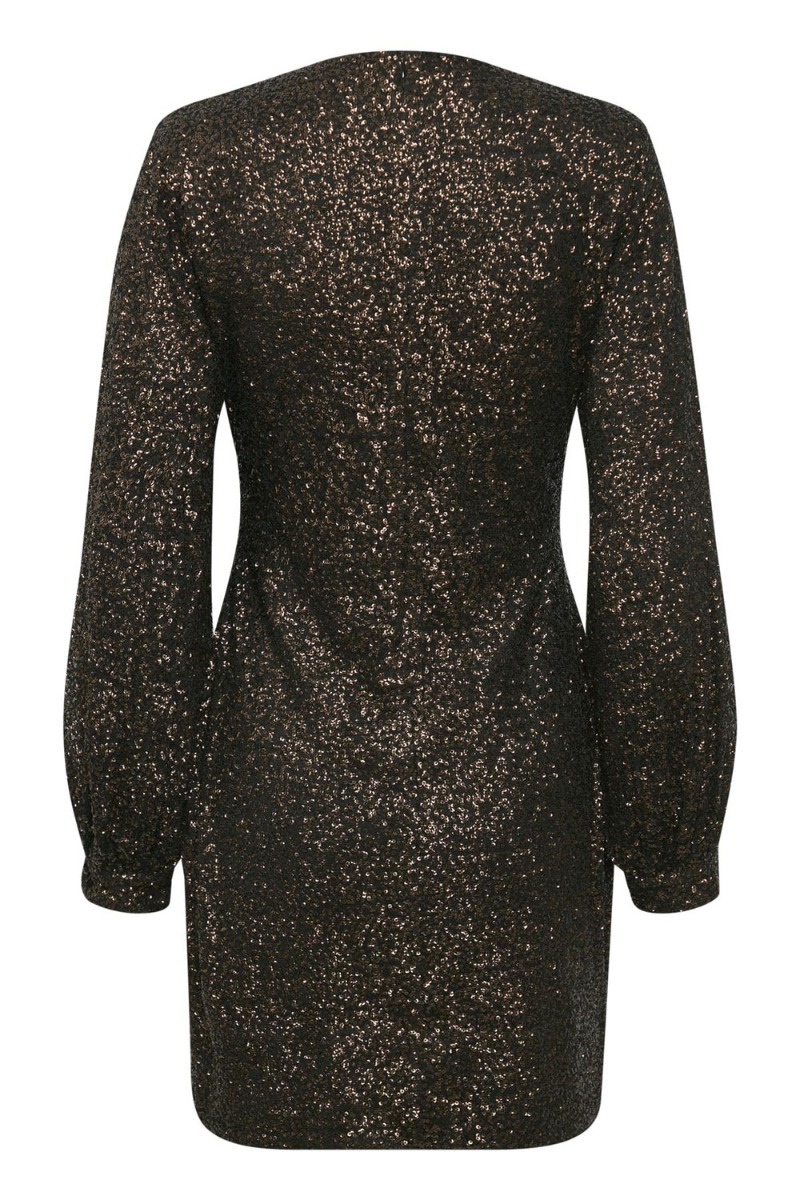 Nu begynder julefrokost kjolerne at lande hos Lykke by Lykke og denne Gestuz kjole er et helt perfekt bud på en smuk kjole til alle julens fester. Kjolen er tætsiddende med rund udskæring, lange ballonærmer og lynlås i ryggen. Den er designet med de smukkeste pailetter overalt !!