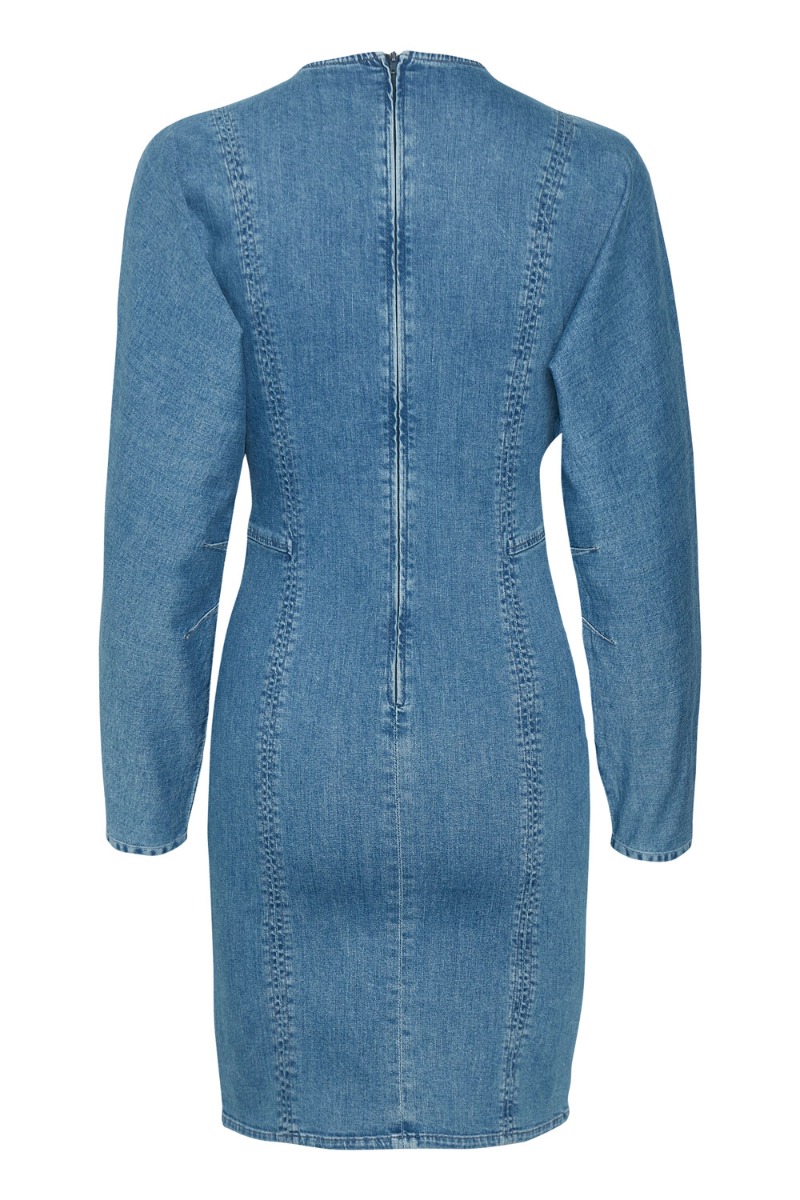 Wauuu, denne kjole fra Gestuz har den smukkeste pasform. Den er tæt med et fast stykke ved taljen. Kjolen er lavet i denim kvalitet med en smule stretch og de smukkeste ærmer der giver en pufeffekt ved skulderen. Style den med en stilet eller lang støvle alt efter anledning.
