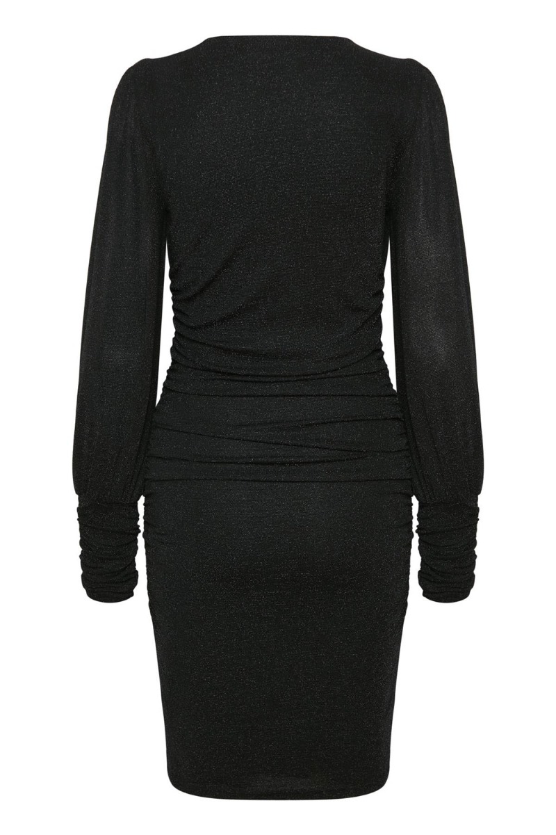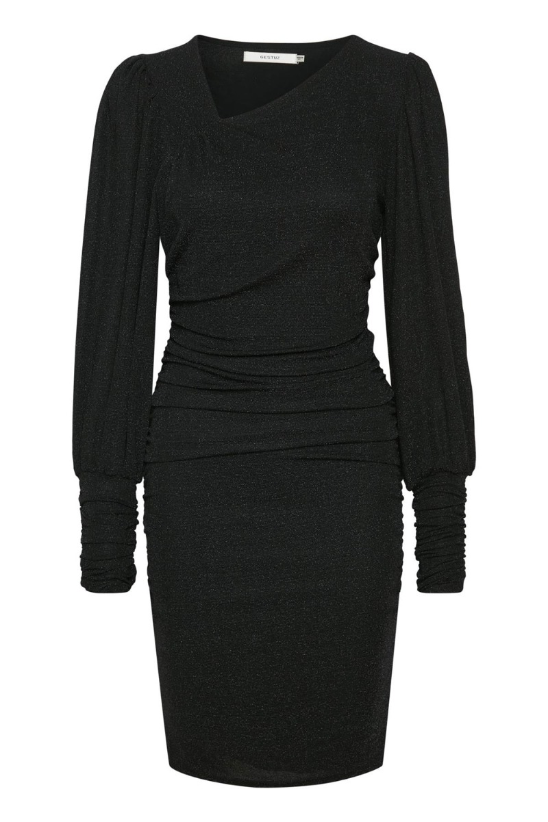 Den nye lille "sorte" fra Gestuz i det smukkeste snit. Kjolen er tætsiddende med en smuk udskæring og pufskuldre. Kjolen er med en let glimmereffekt og er perfekt til julefrokost og nytår - både med og uden en babybule. Kjolen er nemlig med stretch og sidder super smukt på en lille mave.