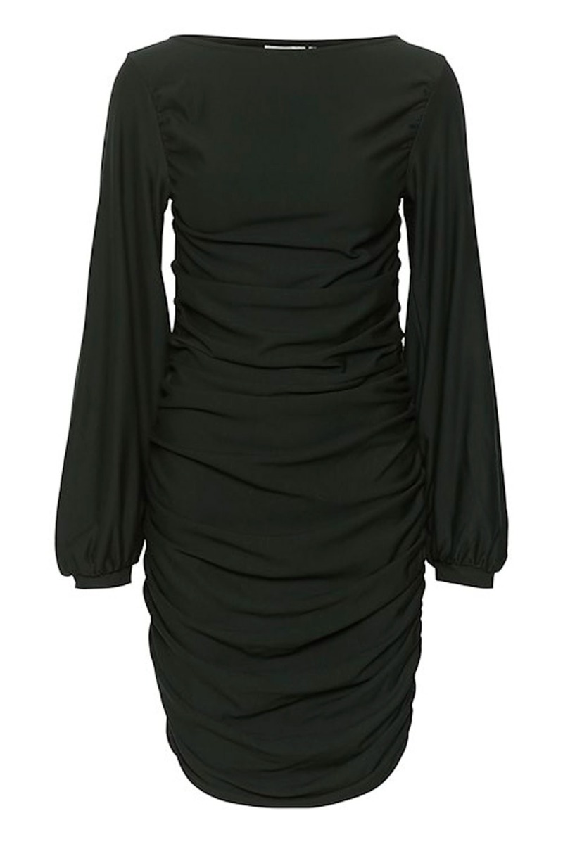 Lettere tætsiddende kjole fra Gestuz, i en ny Rifa model. Kjolen er stram med fine rynkedetaljer foran, som gør at den bare sidder super godt på rigtig mange kropstyper. Kjolen er med masser af stræk og kunne også være oplagt med en babybule. Derudover har kjolen de fineste ærmer med ballon-snit. Den kan styles helt enkelt elegant til festlig anledning, såvel til hverdag med en lidt grovere støvle
