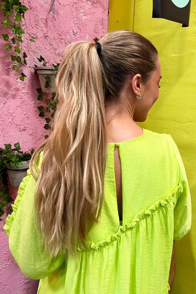 Løs rummelig kjole fra Gestuz i en super cool lime farve. Kjolen har et taknemmeligt snit med peplum og omvendt flæsekant der giver en sød detalje. Den knappes i nakken og giver en lille dråbeformet åbning. De korte ærmer afsluttes med elastikkant. Style den til en stilet, støvle eller sneaks alt efter anledning.