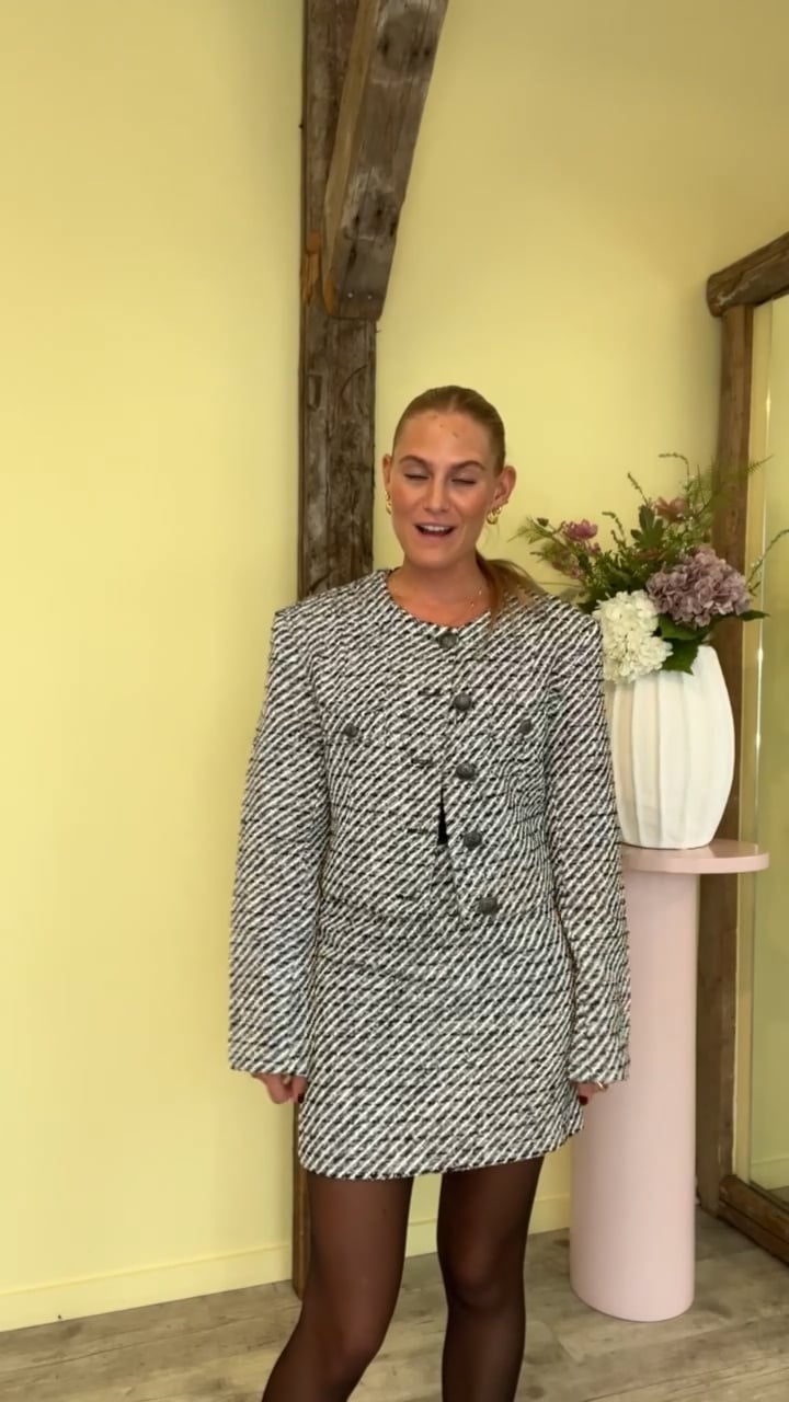 Smuk nederdel fra Gestuz. Dette mini-skirt har et virkelig fint og tidsløst design. Nederdelen har et stribet mønster i hvide, sorte og grå farvenuancer. Brug den alene med en top eller skjorte, eller style den evt. sammen med matchende overdel.