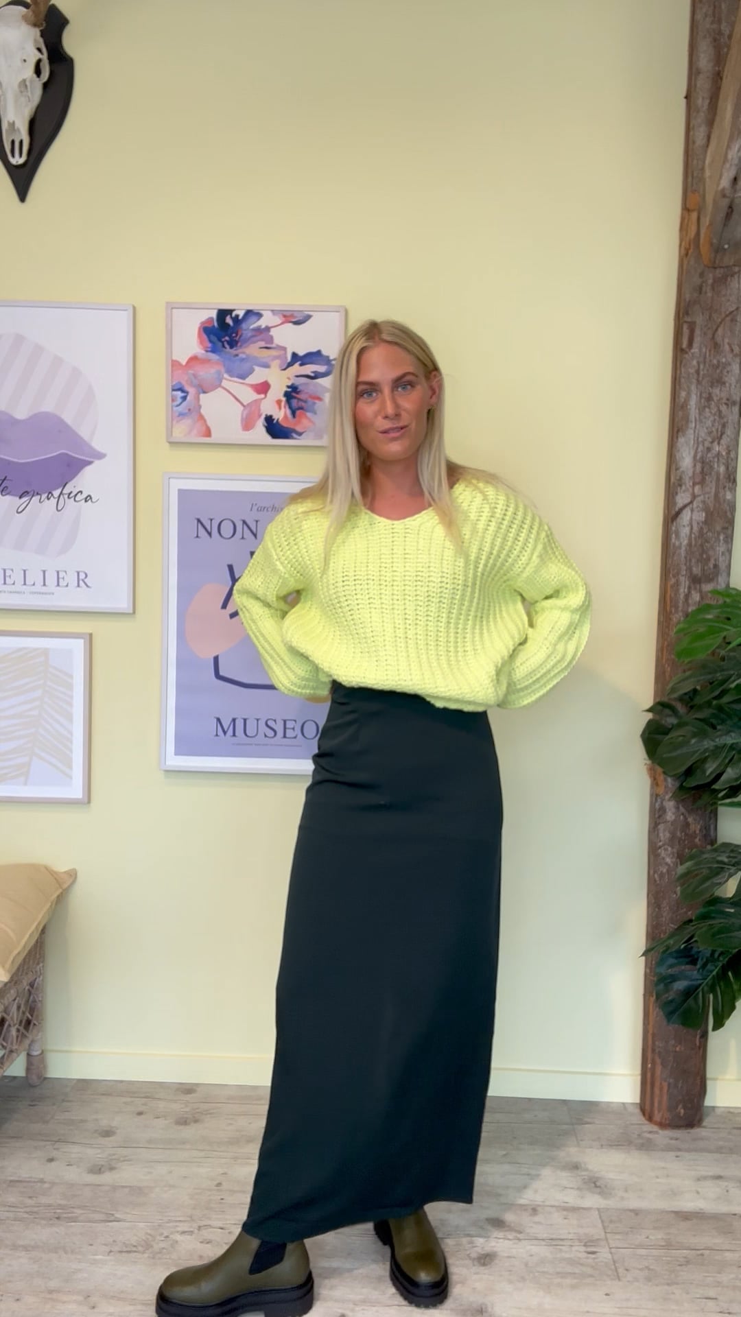 Lang feminin nederdel fra Gestuz i den flotteste dyb grønne farve. Nederdelen har en høj slids bagtil og er med skjult elastikkant i taljen og lynlås bagtil, hvilket gør den helt utrolig behagelig at have på. Nederdelen falder super flot langs kroppen og kan både styles op og ned alt efter anledning.