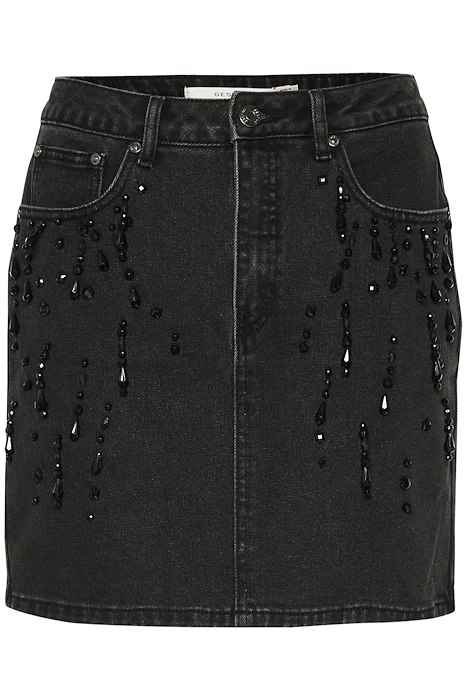 En virkelig sej nederdel fra Gestuz er landet. Denne nederdel har et råt udtryk over sig, men er alligevel flot pyntet med perle-frynser. Den er super smart til et par støvler, og kan sagtens bruges i det kolde vejr med et par strømpebukser under.
