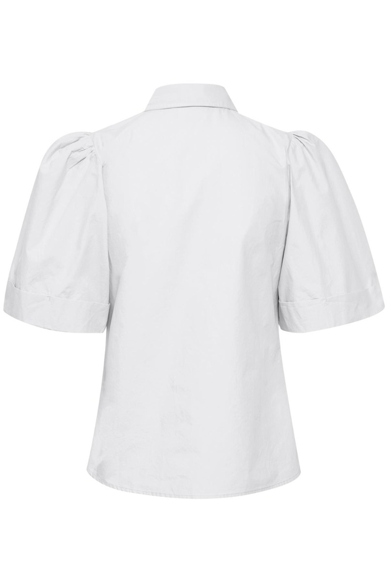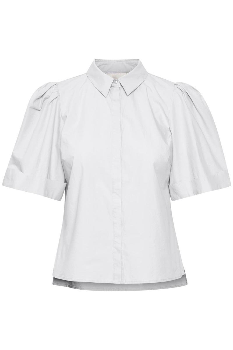 Sød hvid kortærmet skjorte fra Gestuz i et simpelt udtryk med pufærmer og skjortekrave. Foran lukkes den med skjulte knapper, hvilket gør den ammevenlig. Den er super nem at style både til hverdag med jeans eller shorts og kan samtidig nemt bruges med en nederdel til festlig anledning.