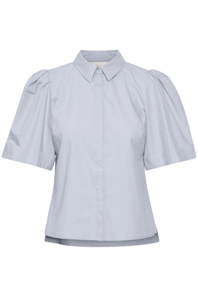 Denne Gestuz skjorte kommer vi til at leve i hele sommeren. Den har et helt enkelt udtryk men samtidig små feminine detaljer med pufærmer og et lille indsnit ved barmen. Foran lukkes den med skjulte knapper og er perfekt til at style både til jeans, en "pæn" buks eller shorts.