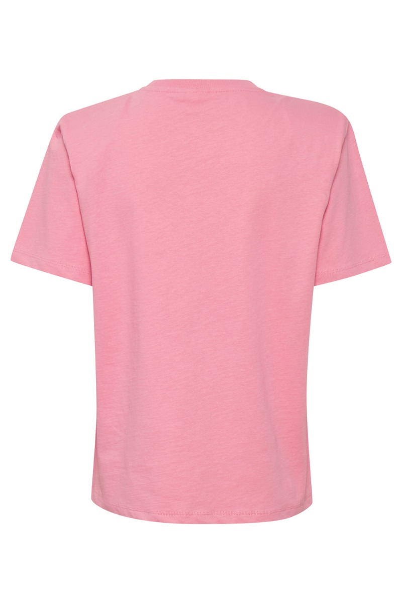 Klassisk t-shirt i pink fra Gestuz. T-shirten er løst siddende med rund hals og korte ærmer. Den er designet med skulderpuder der sidder fast med velcro og derfor er nem at tage af, hvis du vil have et helt almindeligt t-shirtslook. Et must-have til basisgarderoben.