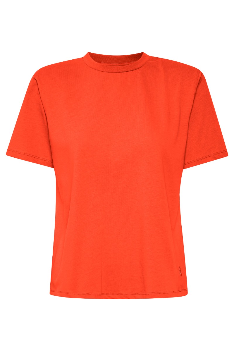 Den sejeste røde t-shirt fra Gestuz med aftagelig skulderpuder. T-shirten er lavet i en dejlig kvalitet i en god klassisk model med rund udskæring og korte ærmer. Den er perfekt til foråret og sommeren med alle de smukke farver.