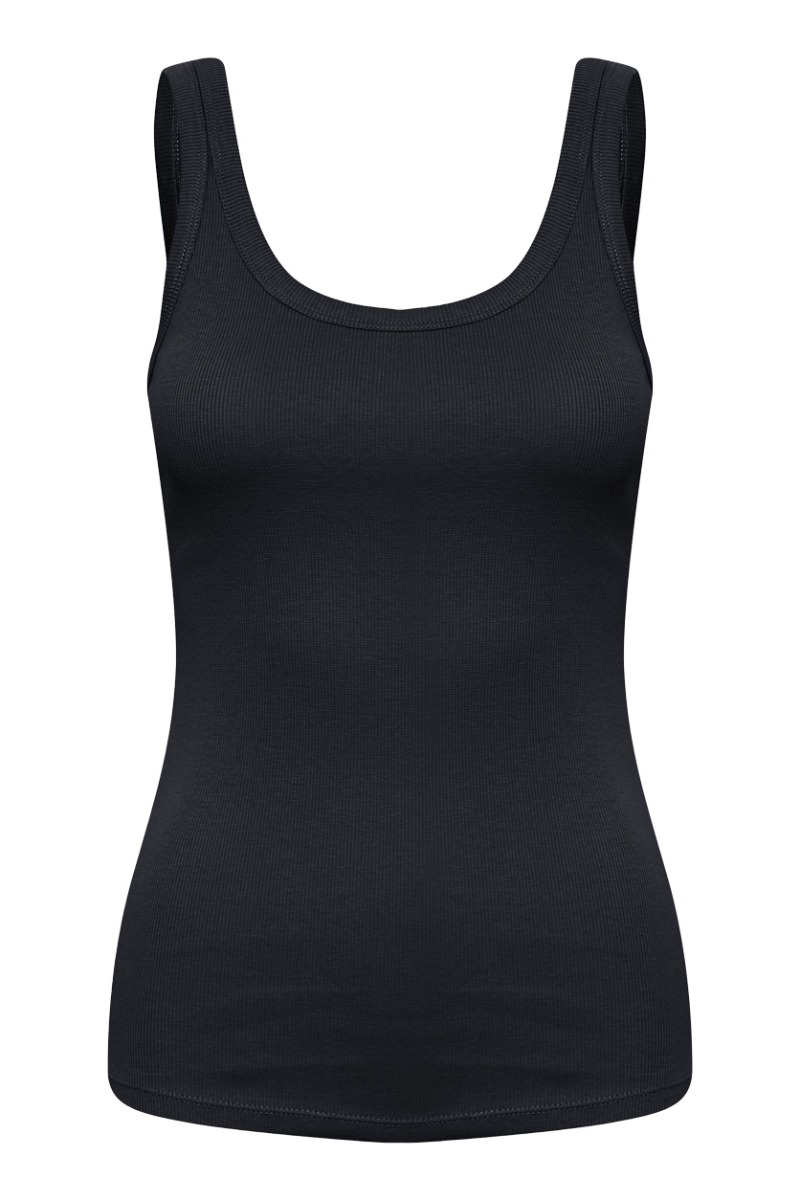 Sort basis top fra Gestuz i ribbet materiale der gør den utrolig behagelig at have på med masser af stretch. Toppen har udskæring både foran og bagtil med brede stropper. Den er et must i garderoben året rundt!