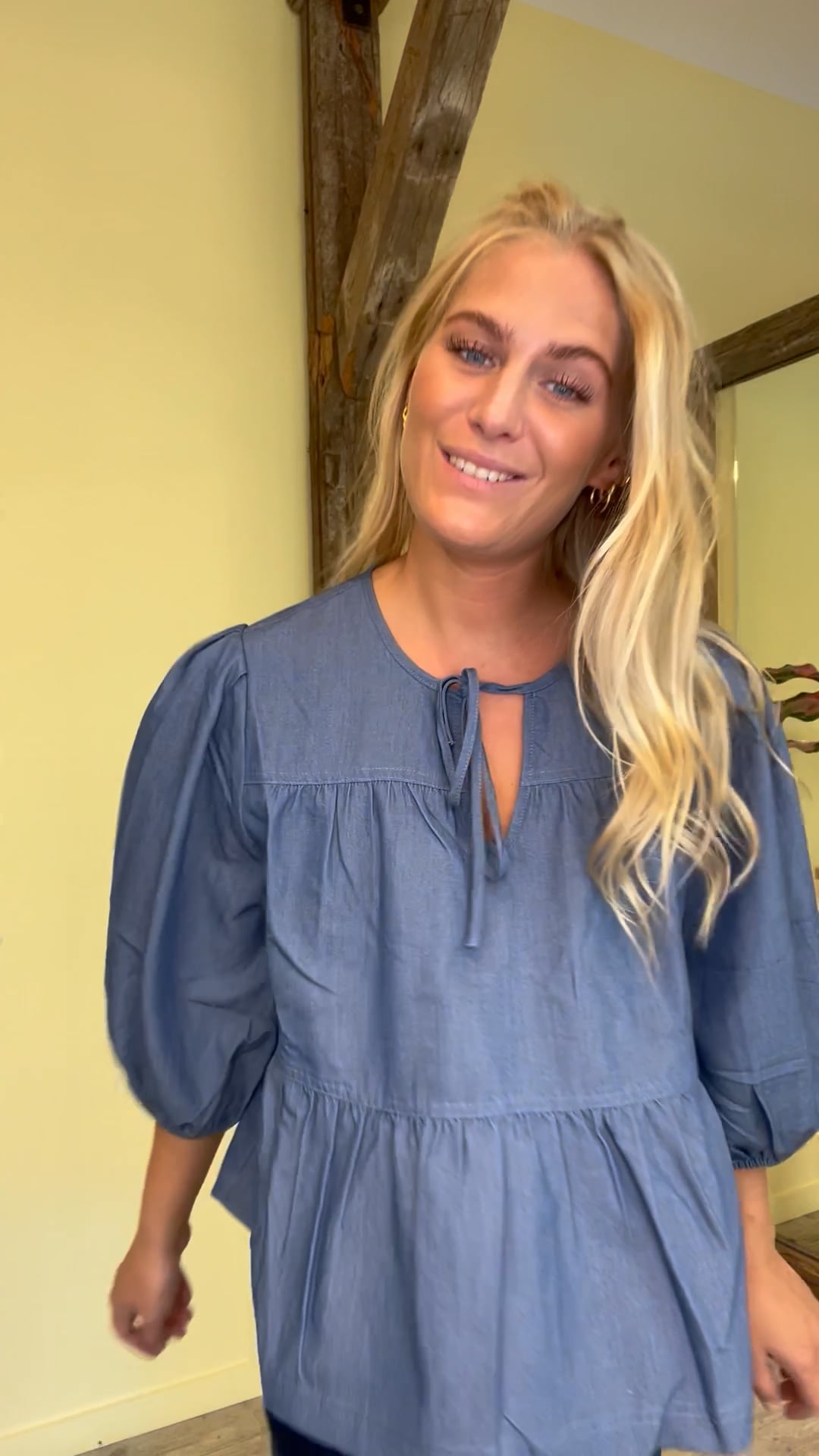 Den fineste bluse fra Global Funk. Blusen er i den smukkeste blå farve og har en lille sløjfedetalje ved halsen. Derudover er blusen med peblum effekt og har fine ballonærmer, som afsluttes med et elastik. Den er kort i modellen og helt normal i størrelsen.