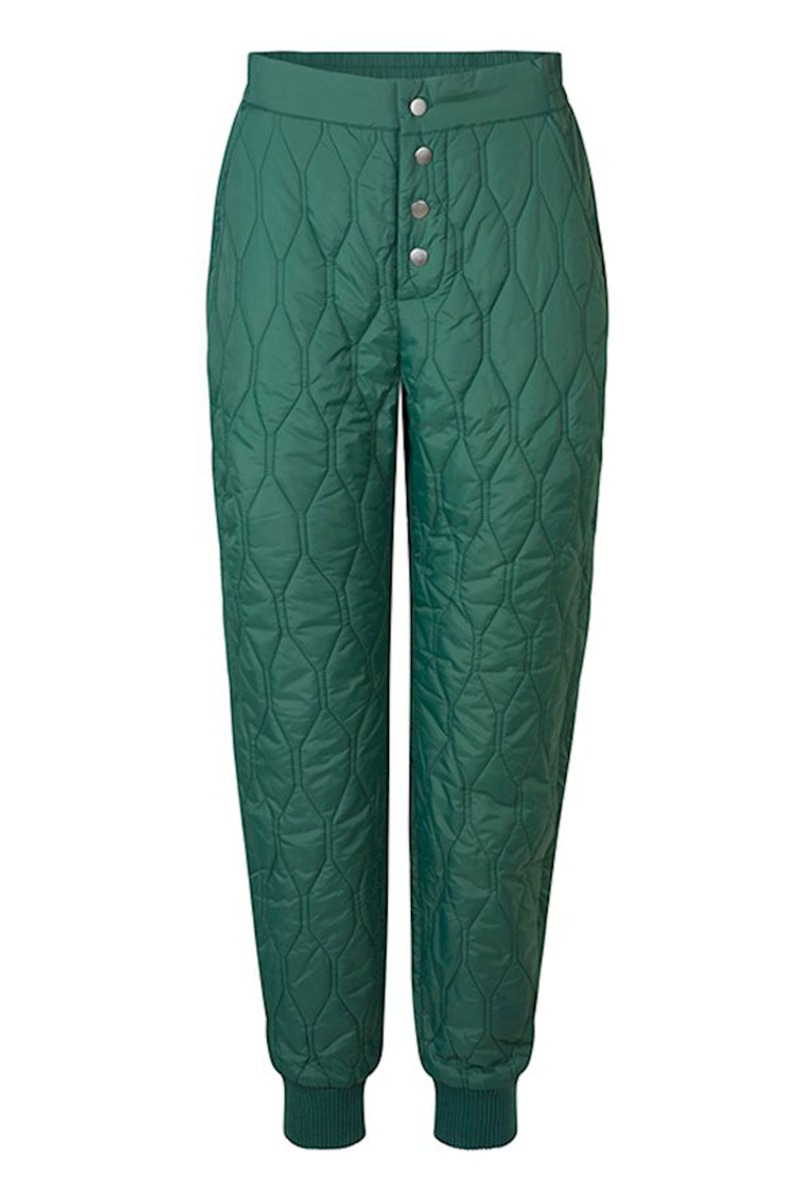 Endelig kan i få fingerne i det skønne termosæt fra Global Funk. Her har Global Funk lavet termobukser som en del af et sæt, der skal følge op på vores elskede Isolde flyverdragt. Bukserne her en med elastikkant bagpå i taljen og spændes med fire metalknapper foran. Bukserne har ribkant ved anklen der slutter sig ind til benet og giver en god pasform. Style dem med den matchende jakke i samme grønne farve.