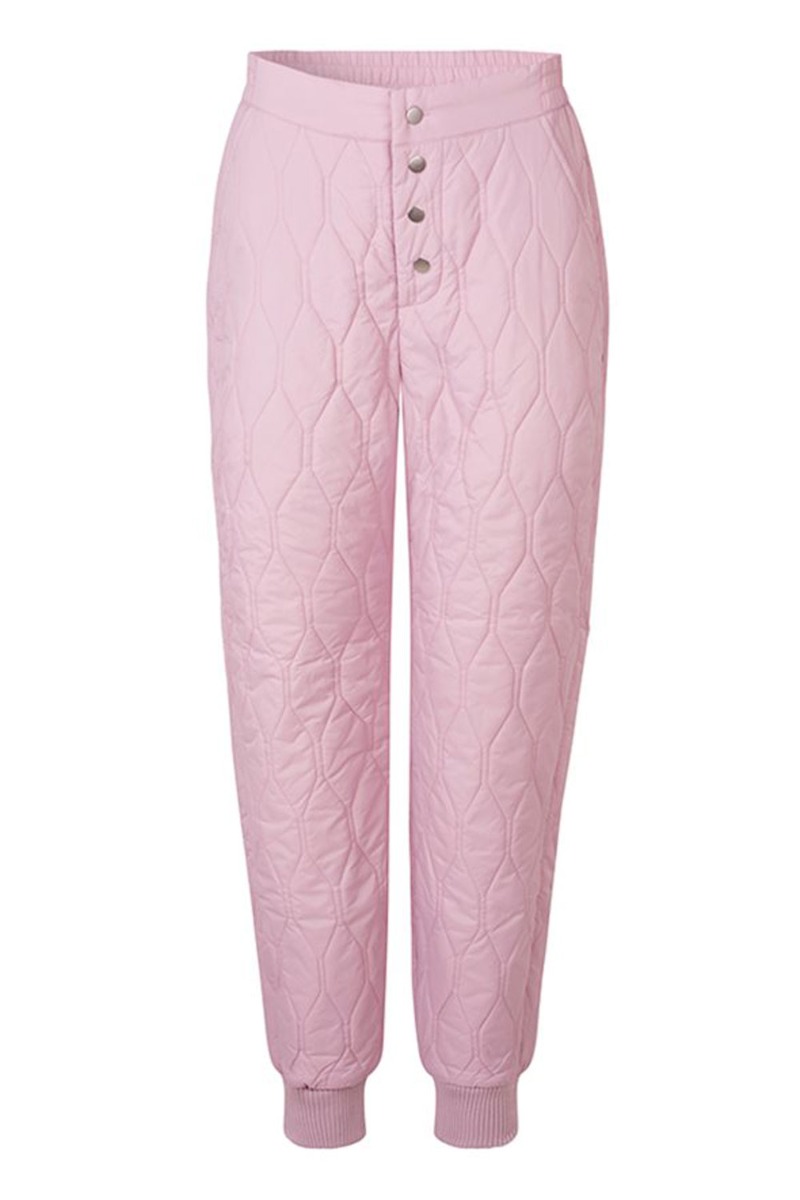 Vores skønne termobukser er landet i den smukkeste LYKKE farve! Bukserne er inspireret fra den populære Isolde flyverdragt, nu i to-delt sæt istedet med overtræksbukser og tilhørende jakke. Bukserne har elastik i livet med knapper foran og afsluttes med ribkant ved anklen der giver en god pasform. Style det som sæt med den matchende rosa jakke.