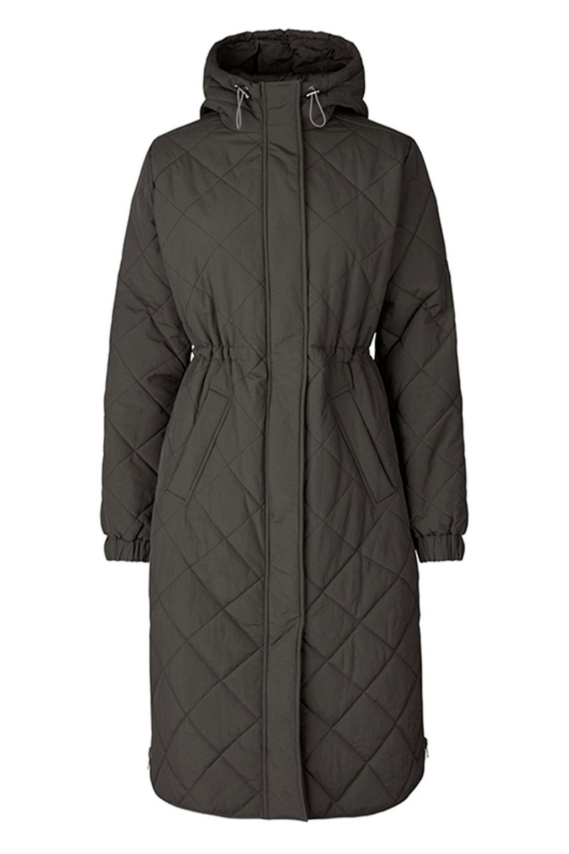 Den perfekte jakke til det kolde danske efterårsvejr. Jakken er designet i quiltkvalitet med en vandafvisende overflade i army. Den har monteret hætte med farvet snøre foran og to lommer der lukkes med en knappe. Den lukkes foran med en skjult 2-vejs lynlås og trykknapper og har løbebånd i taljen der kan justeres indvendigt efter eget ønske. Jakken er foret med det blødeste fleece materiale der holder dig varm!
