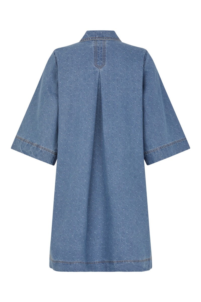 Den helt klassiske kjole i denim her fra Global Funk, men til denne sommer er den simpelthen landet i de sødeste polkaprikker! Kjolen er i en lækker, blød denim, med halvlange ærmer og så knappes den midtpå. Brug denne kjole til både sneakers, sandaler eller et par klipklapper!