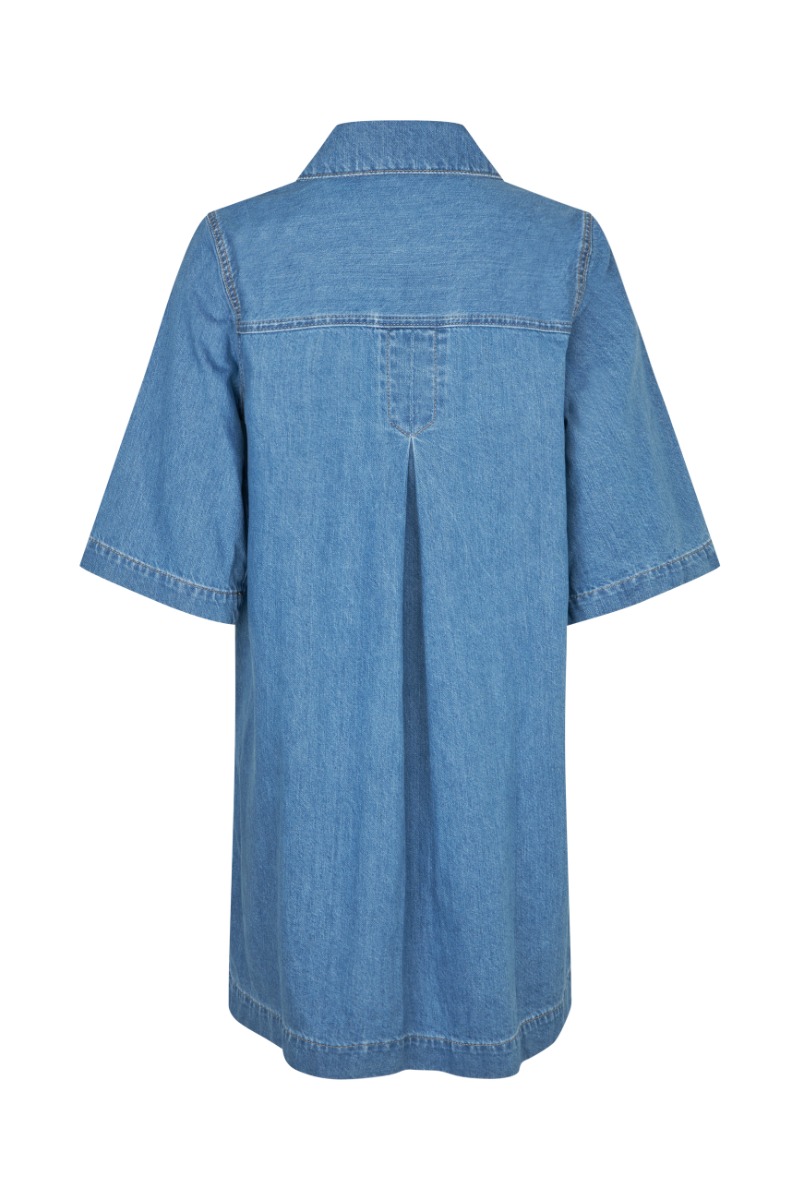 Denim kjoler er altid geniale både til fest og hverdagsbrug! Denne flotte kjole fra Global funk, har et fint a-snit med en lynlås hele vejen ned og korte t-shirtærmer. Kjolen har en super lækker kvalitet der gør den utrolig behagelig at have på.