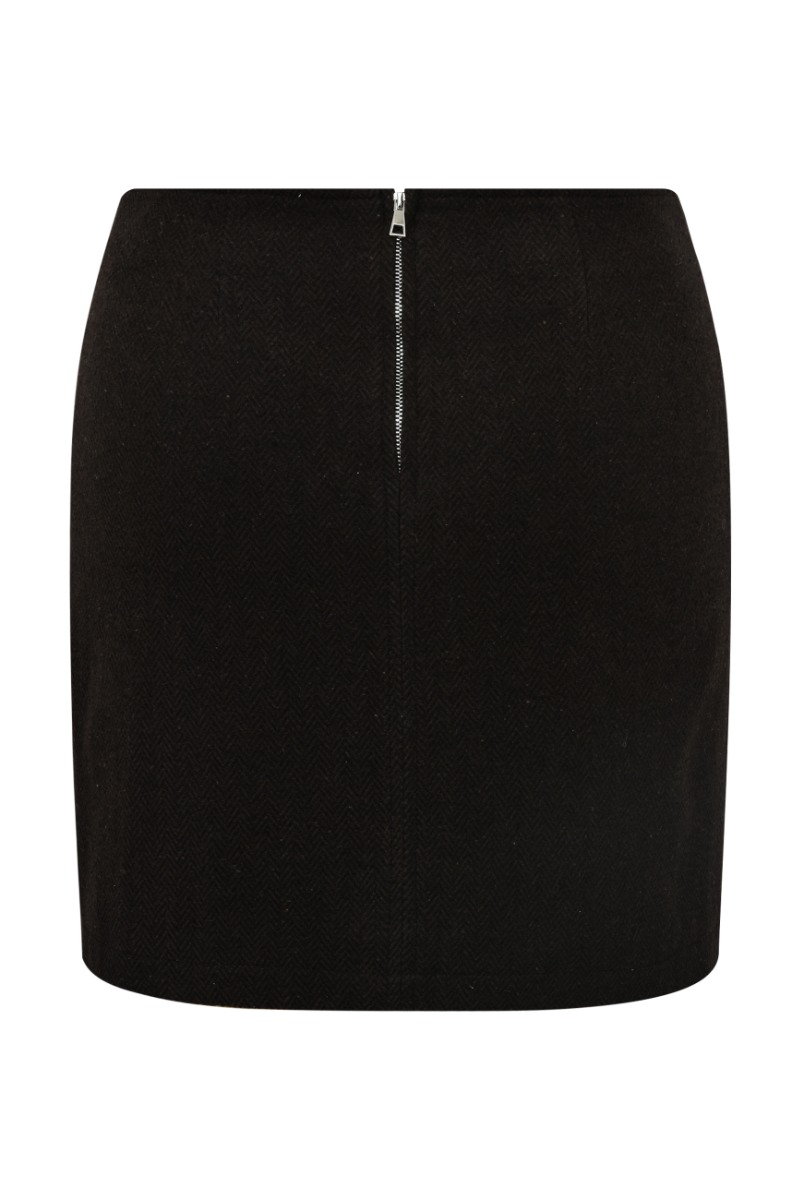 Nederdel fra Global Funk. Denne nederdel har en tætsiddende pasform i et strækbart og behageligt materiale. Den har en fin detalje i livet, med et lille sølvspænde. Den lukkes bagtil med lynlås. Brug den til en hvid skjorte eller anden klassisk og simpel overdel.