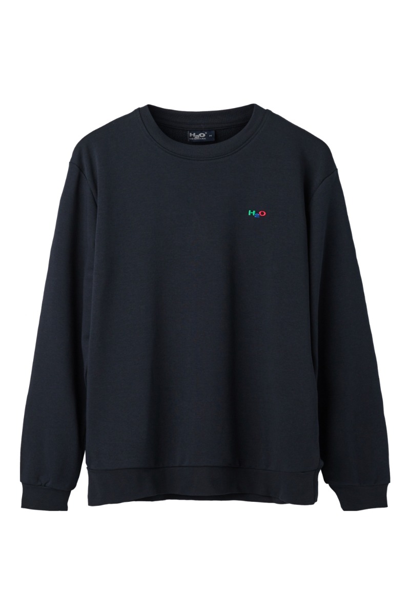 Navy H2O sweat med broderet logo i klassiske farver på brystet. Sweatshirten er med rund hals og ribkant ved hals, håndled og bund, der giver en god pasform. Style den med matchende bukser i samme kvalitet og skab det perfekte weekendssæt.