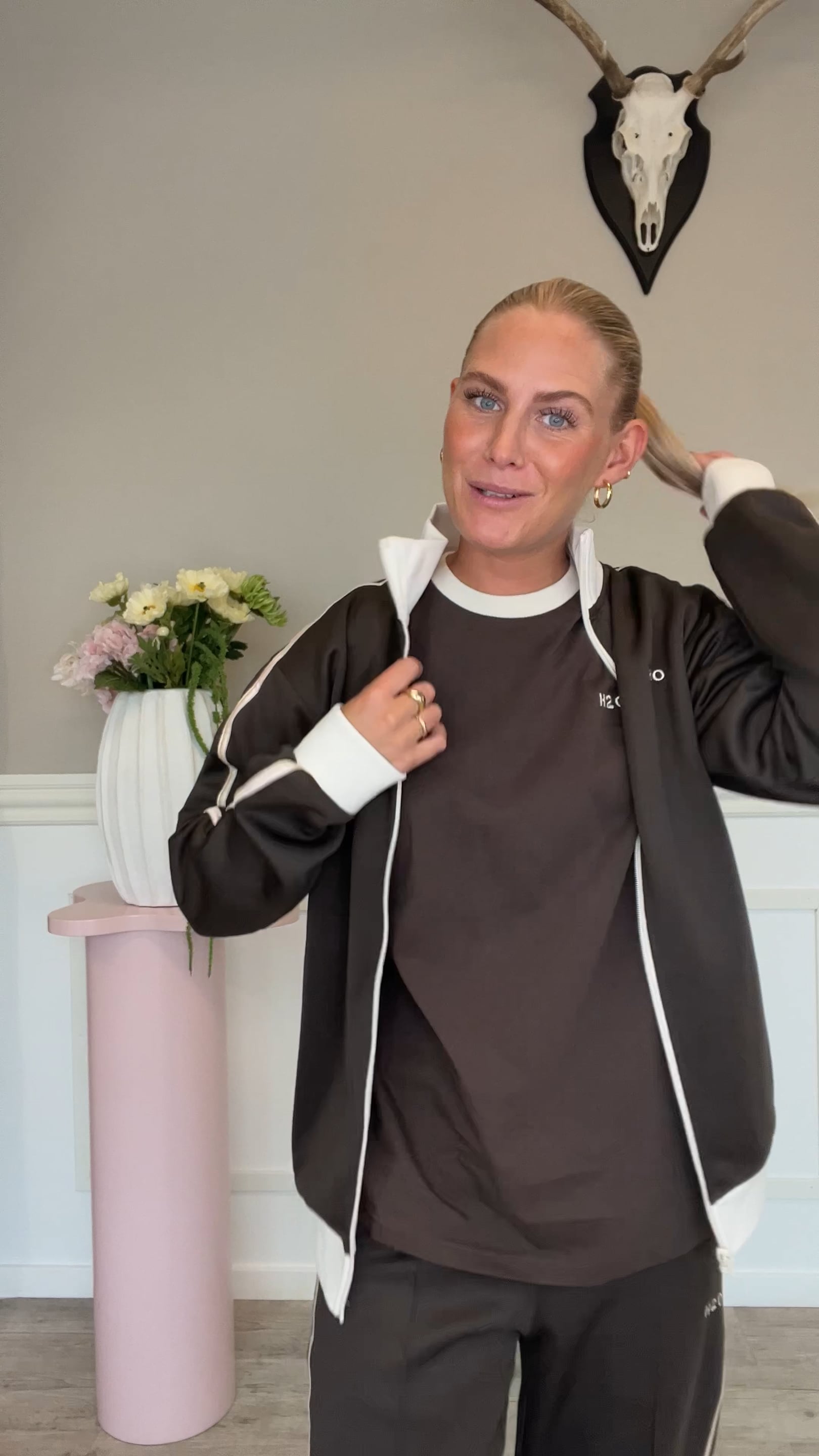 En cool tracksuit jakke fra H2O i en ny og fin farvekombination. Den er med ribkant ved bund, ærmer samt hals og har dette shiny look i kvaliteten. Den er behagelige at have på hele dagen og kan nemt bruges sammen med de matchende underdel. Hele sættet findes også i rosa.