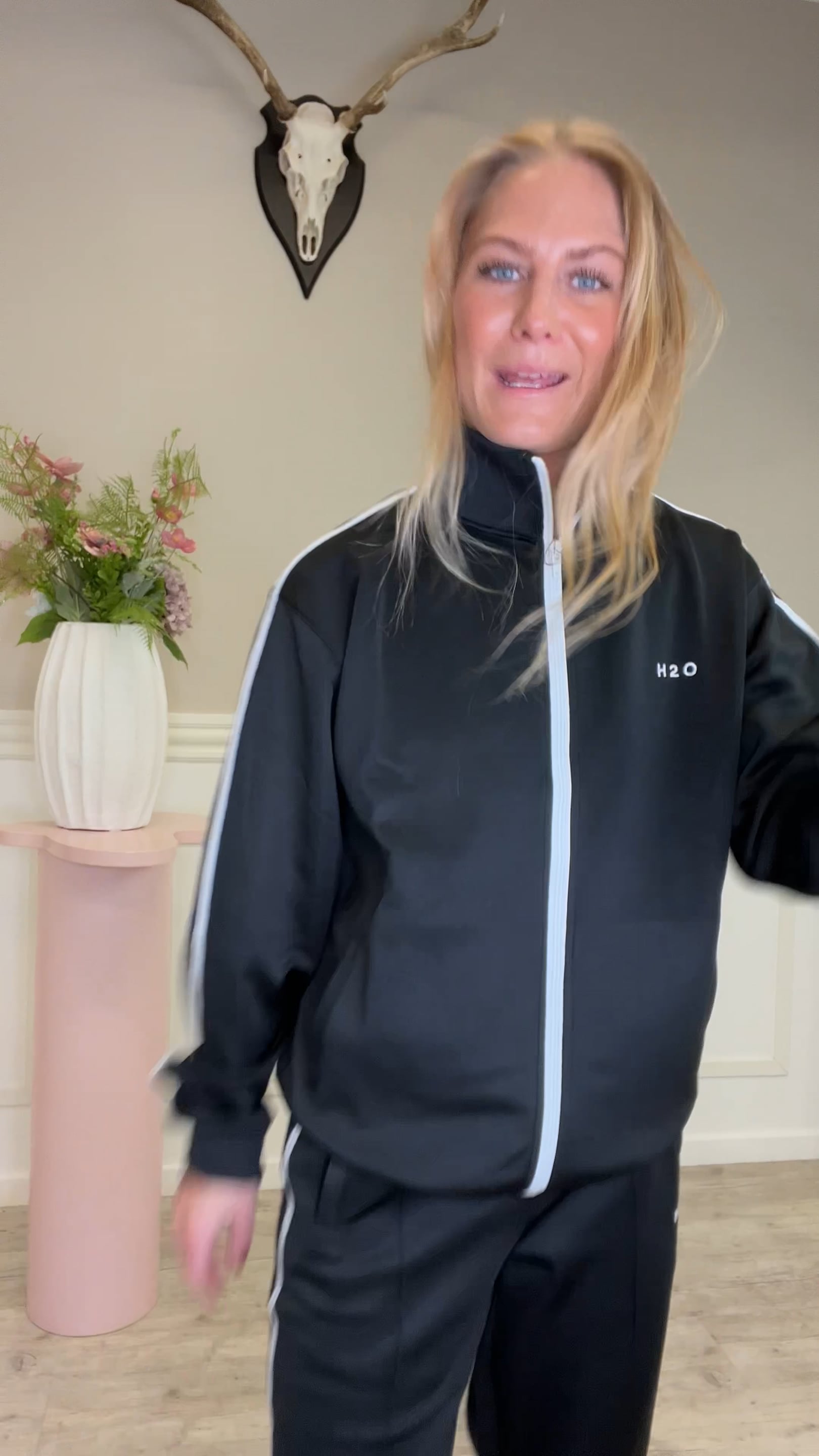 Et par virkelig smarte og behagelige bukser fra H2O. Disse bukser har et lille logo foran, brede ben og elastik i taljen. De er super fine til den matchende jakke, men kan bestemt også bruges til eksempelvis en t-shirt.