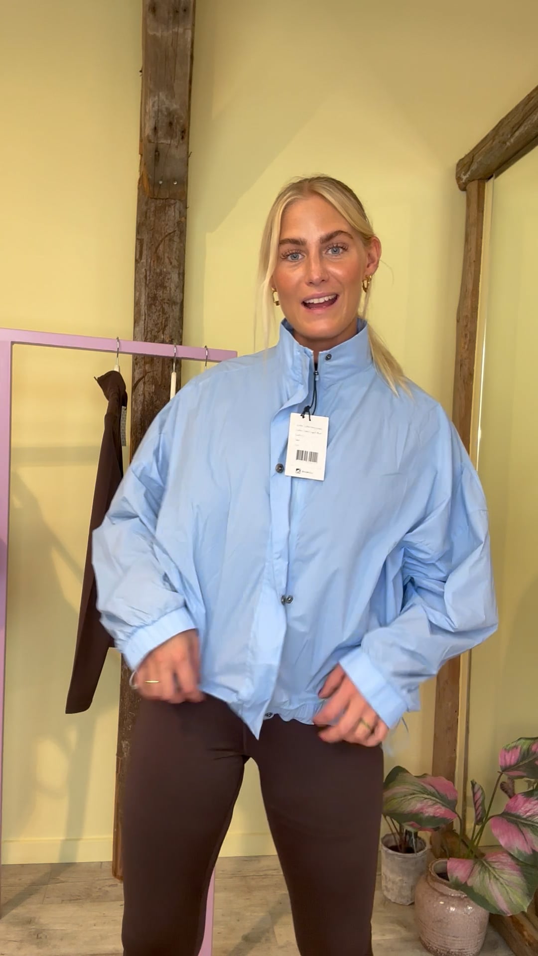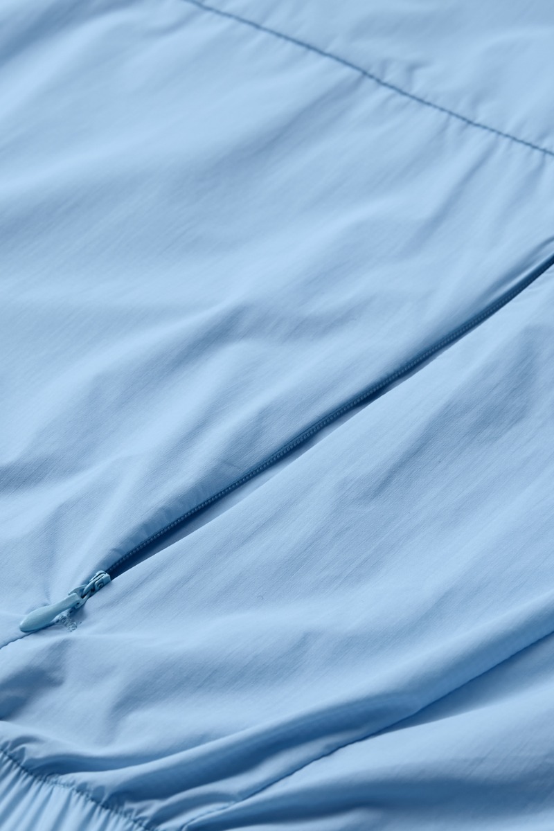 Her er den den lækreste overgangsjakke i den fineste lyseblå farve med lynlås og knapper foran hele vejen ned. Du kan spænde den ind forneden så den slutter tæt og har en lille lomme bagpå til evt. telefon eller nøgler. Jakken har selvfølgelig også det sejeste logo "MKH2O" øverst bagpå ryggen. Jakken er super anvendelig, da den både kan bruges til hverdag eller til din sport.