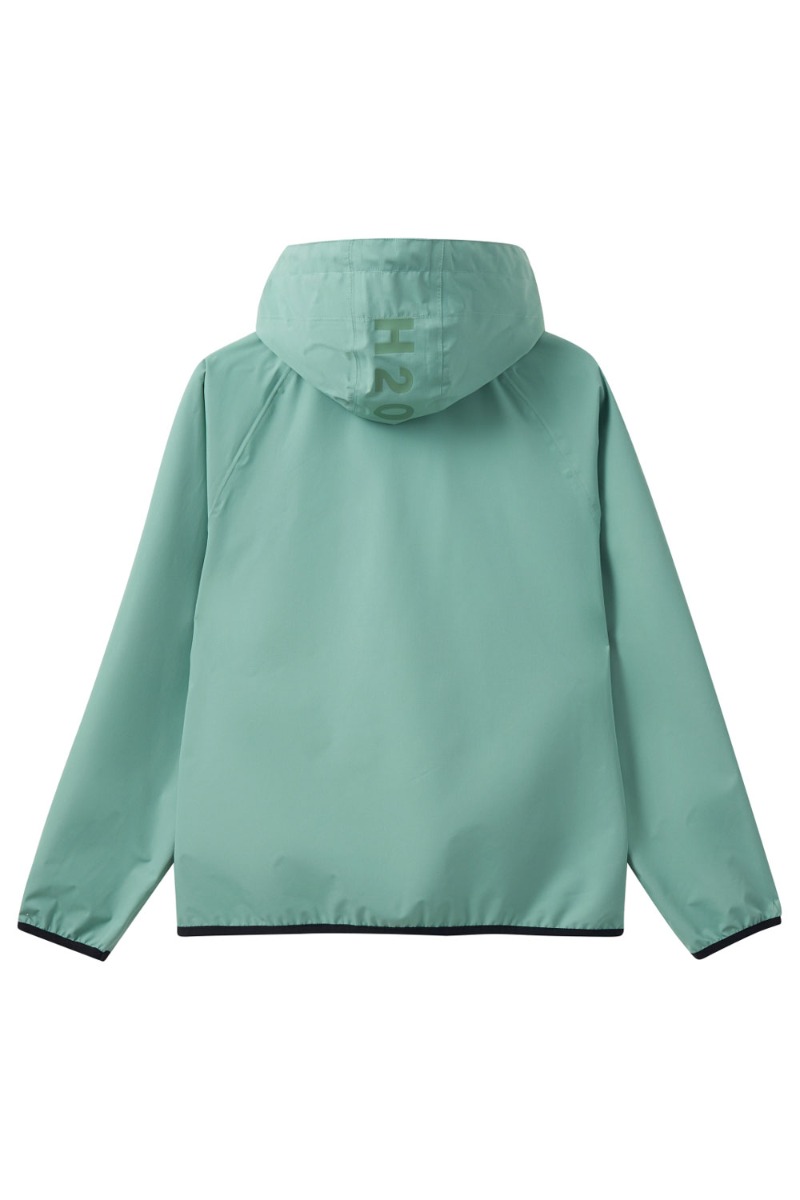 En fin regnjakke fra H2O er kommet til denne sæson i en sart mint grøn. Den er kommet i en masse forskellige farver, så der sagtens kan findes en der passer til dig. Den kan pakkes sammen ind igennem lommen og kan derfor blive nem at have i taske. Den er med hætte som kan snørres ind.