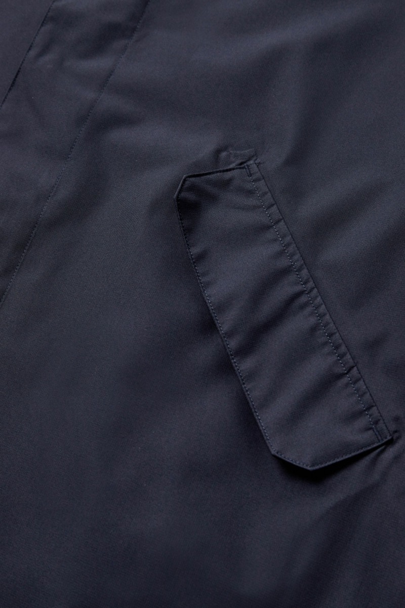 H2O har lavet denne seje regnjakke som er lavet i en dejlig let kvalitet og en klassisk navy farve. Den har hætte som kan pakkes ned og ind i kraven. Den kan snørres ind i taljen med indvendig elastiksnor og så har den dybe lommer der lukkes med en magnet knap. Den findes i flere farver og er nem at pakke i tasken.