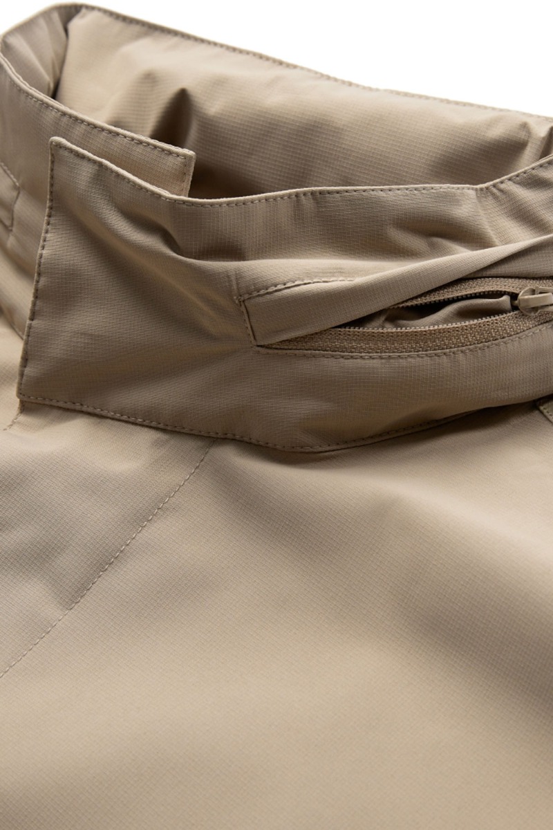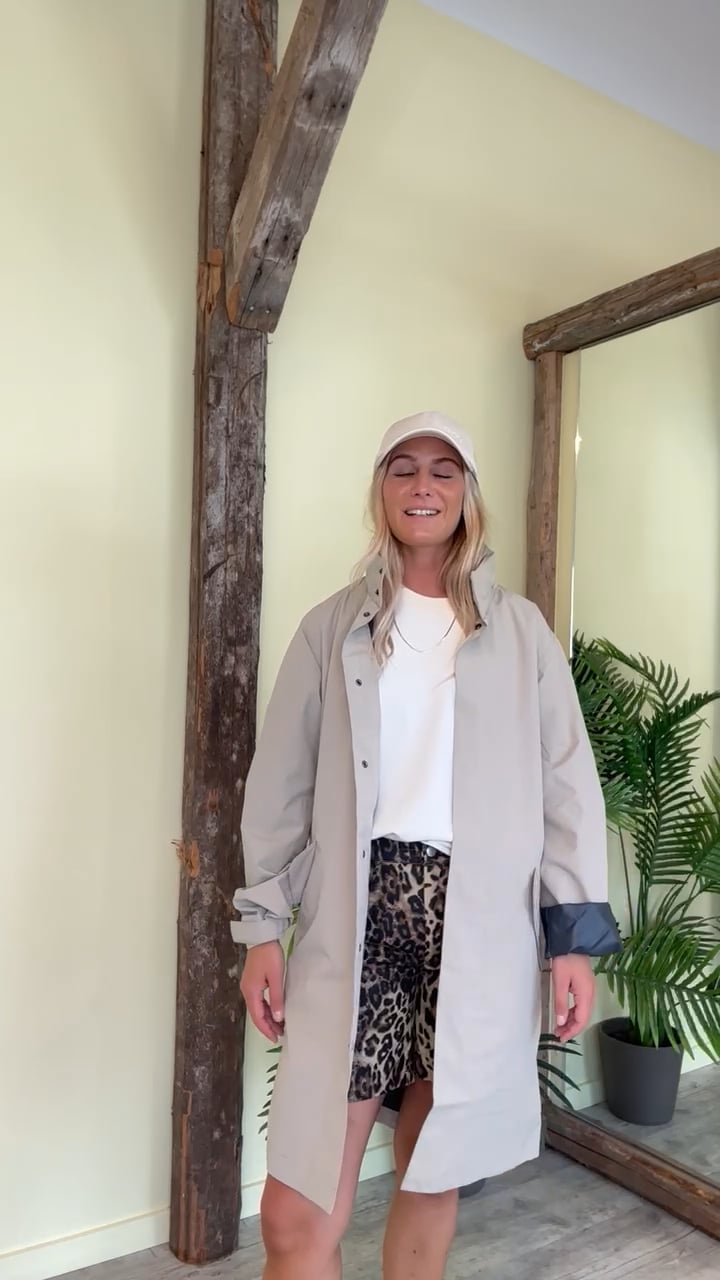 H2O har lavet denne regnjakke som er lavet i en lækker let kvalitet og en smuk brun farve. Den har hætte som kan pakkes ned og ind i kraven. Den kan snørres ind i taljen med indvendig elastiksnor og så har den dybe lommer der lukkes med en magnet knap. Den findes i flere farver og er nem at pakke i tasken.