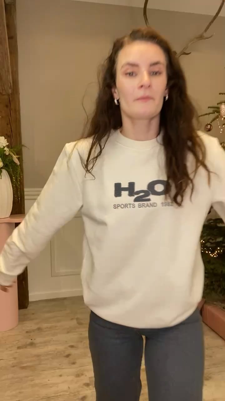 Denne gode sweatshirt er også en model vi kender, men er kommet i denne nye farve kombination. Den er fra H2O og derfor er der også lavet et logo tryk foran men en lille 3D effekt. Den er løs i pasformen og kan bruges til bukser, nederdel og shorts. Den findes i flere farver.