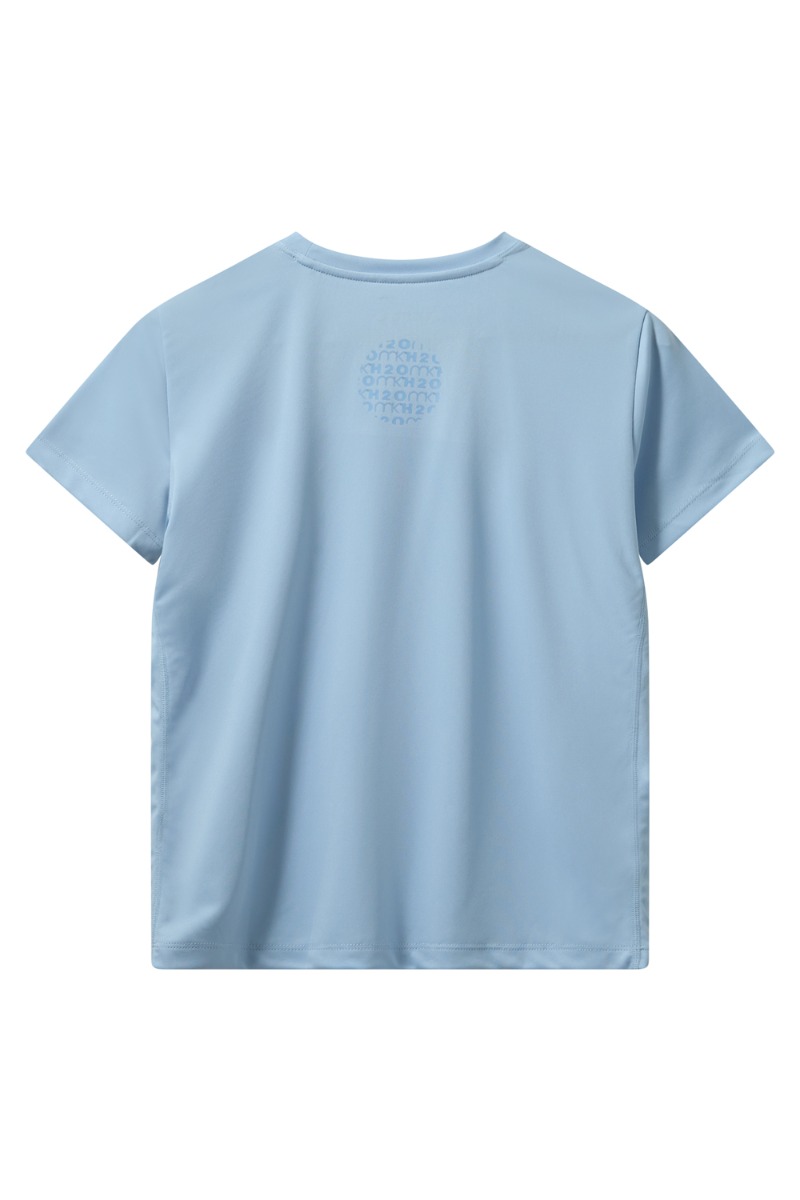 Her er den blødeste t-shirt i lyseblå som du igen både til style til hverdag med en blazer udover og et par jeans eller du kan bruge den til sport. T-shirten har det seje "MKH2O" bagpå også i lyseblå!