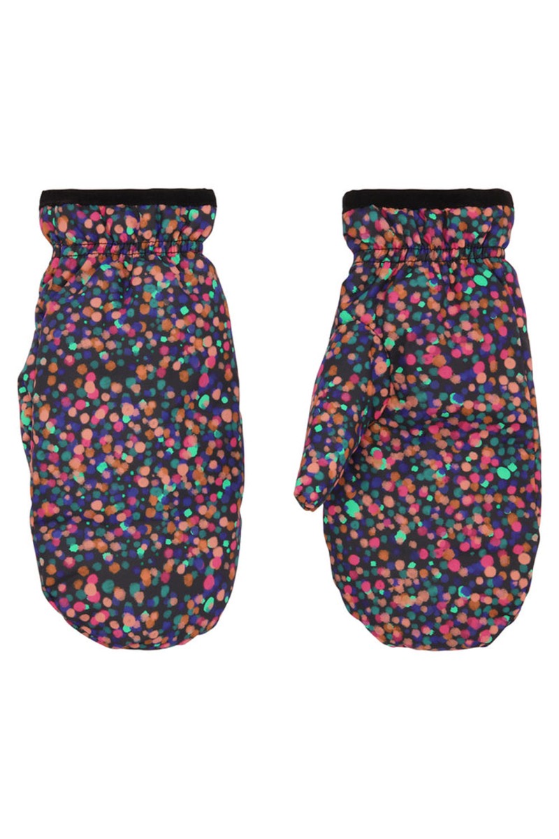 De skønneste luffer fra Hunkøn med confetti mønster på en mørk baggrund er geniale til at holde dine hænder tørre og varme i regn og blæst. De er foret indvendigt med et blødt og lækkert foer og har en elastikkant ved håndleddet.