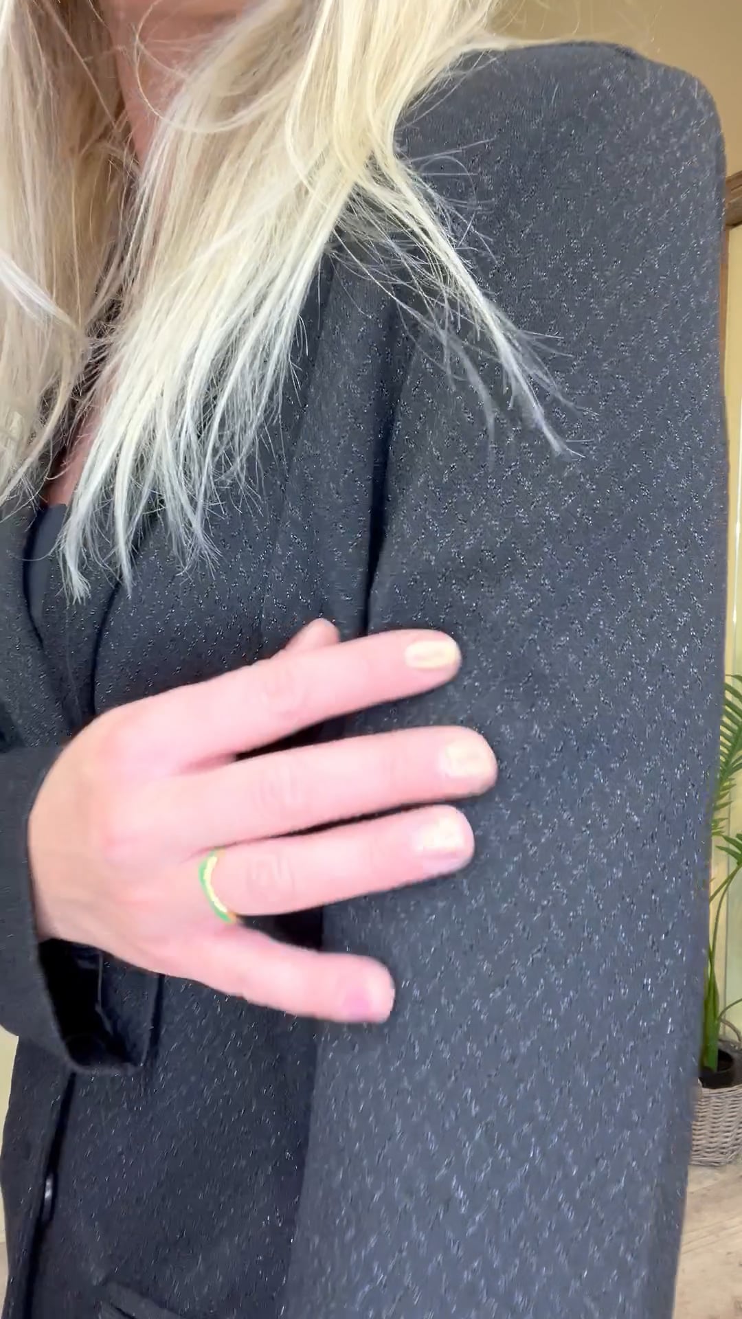 En sej blazer fra Ichi er kommet som en del af et sæt fra Ichi. Den er oversized og selvom den er en del af et sæt så kan den sagtens bruges for sig selv til en fin kjole eller med en anden flot buks. Den er sort med sort glimmereffekt, derfor er effekten lidt mere afdæmpet og kan passe bedre til det elegante look.