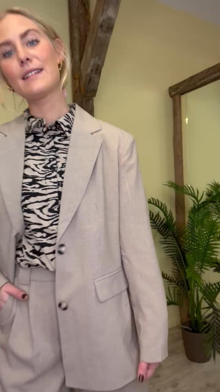Cool oversized blazer fra Ichi i lysbeige nuance. Blazeren har en rummelig pasform med skulderpuder, knappelukning og listelommer. Den tangere til det oversized fit og er super cool at style til de matchende bukser for et fuldendt suit-look.