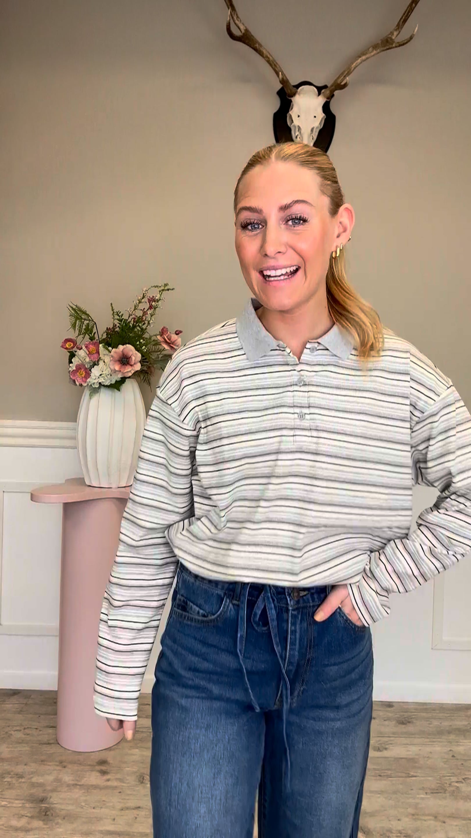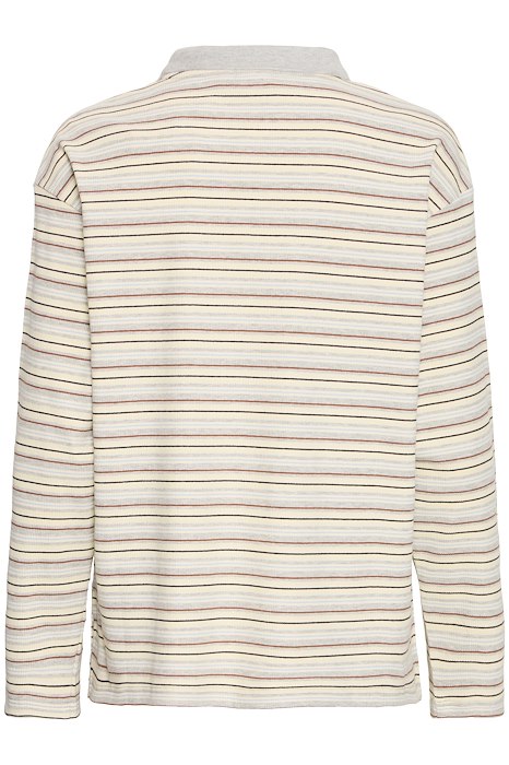 Så er denne super fine bluse landet fra Ichi. Denne bluse er lavet i et polo-look med knapper og krave. Den har en løs pasform og slids i hver side i bunden. Style den til et par jeans for et cool og afslappet look.