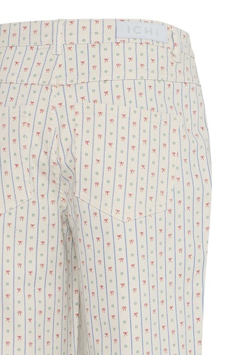 Fine bukser med print fra Ichi. Bukserne har lige ben og et feminint print, af sløjfer og blomster. De er virkelige søde at style til en enkel overdel. Ønsker man et fuldendt og fint sæt, som kan bruges både til hverdag eller særlige anledninger, så findes matchende skjorte til!