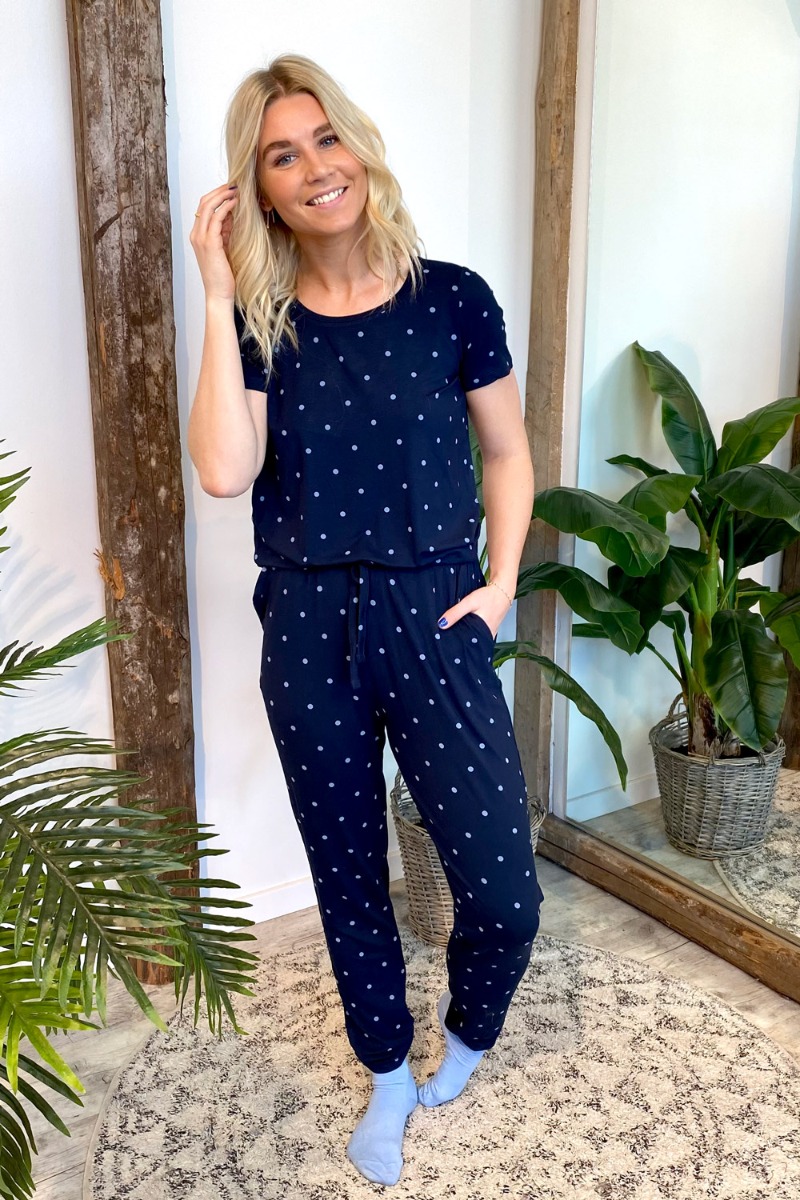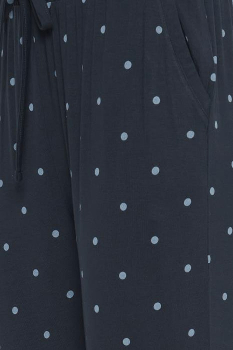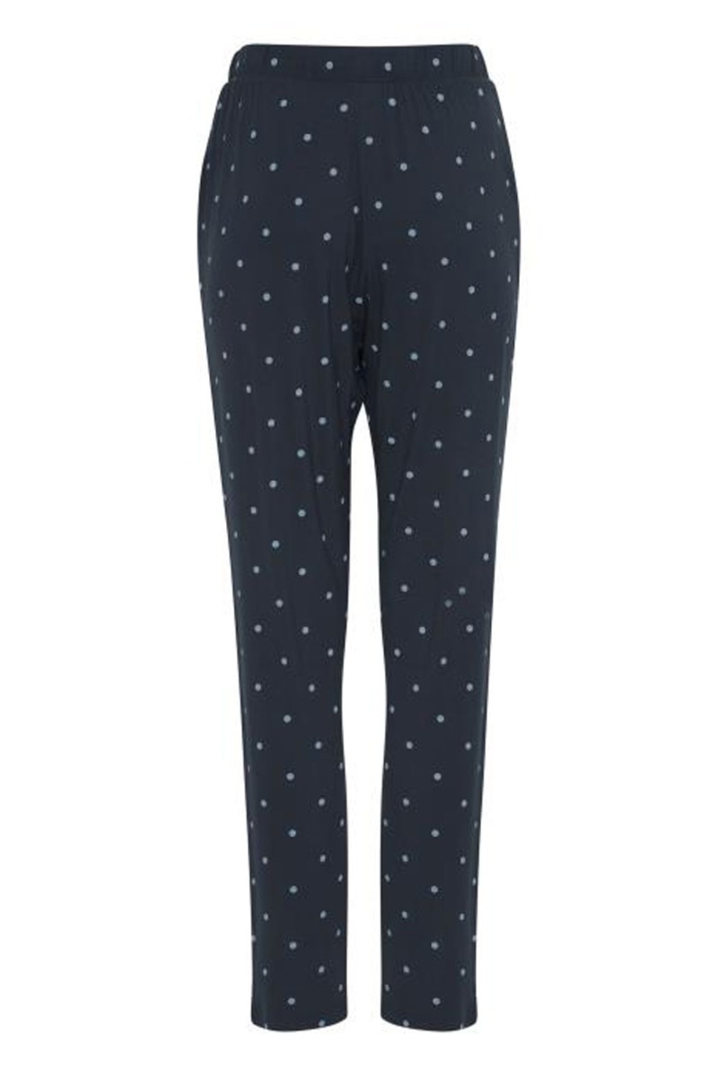 Lisa-serien fra Ichi er landet i nye skønne prints og farver! Disse bukser er navy med små blå prikker og lavet i det blødeste materiale der gør dem helt perfekt som hyggesæt. Bukserne er løse med elastikkant i livet og snøre. Style dem med matchende t-shirt i samme print.