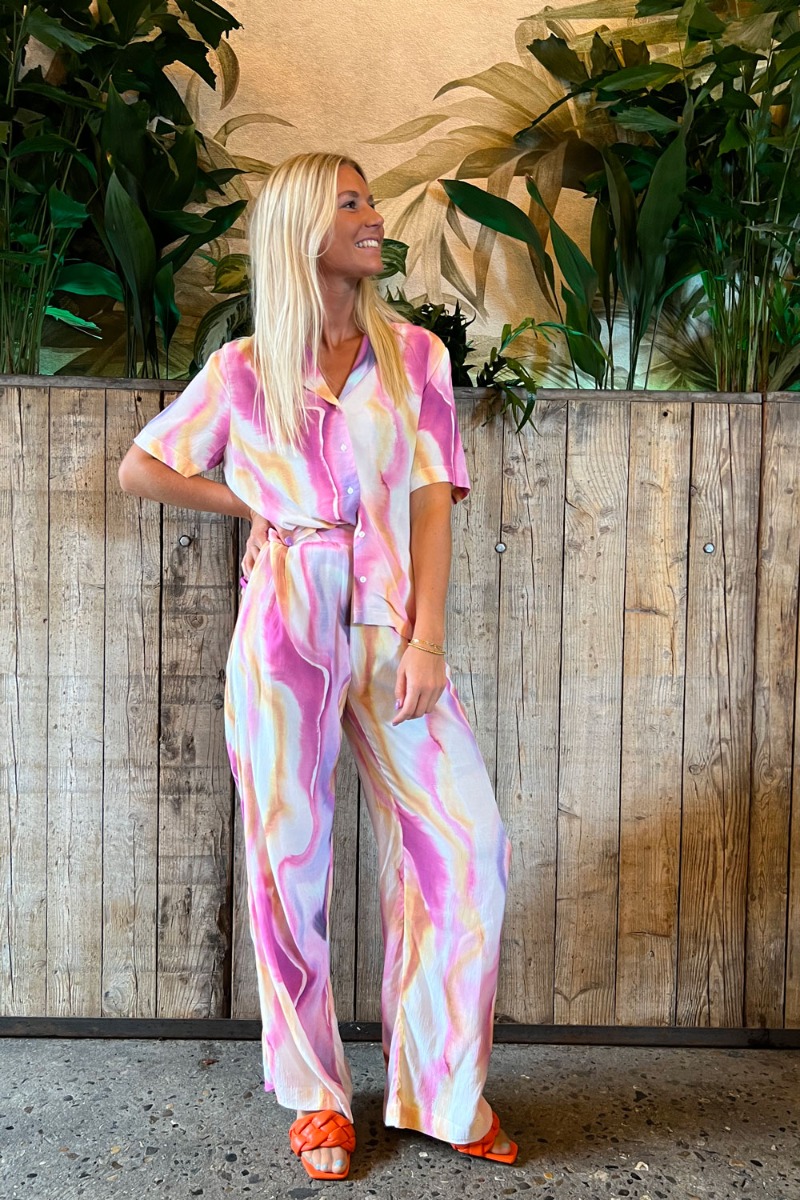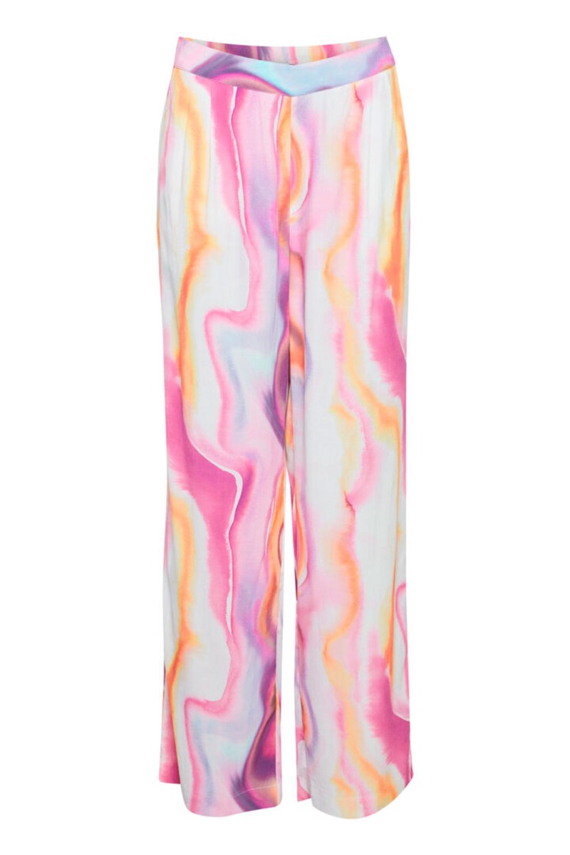 Flotteste multifarvet bukser fra Ichi. Et par løstsiddende bukser med elastikkant i taljen og lommer i begge sider. Et par skønne bukser som er oplagt at style med den matchende skjorte eller en strik eller blazer!