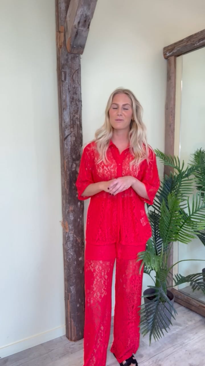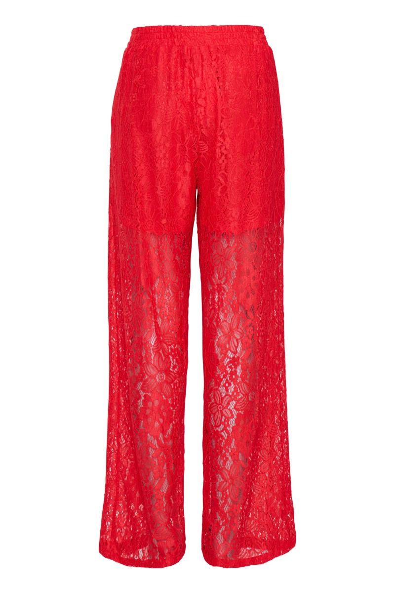 De fineste bukser fra Ichi med blondeudtryk og indershorts, så de ikke er gennemsigtige. Der er elastik i taljen, hvilket gør dem dejlig behagelige at have på. Der findes matchende skjorte til, så du kan skabe et helt sæt.