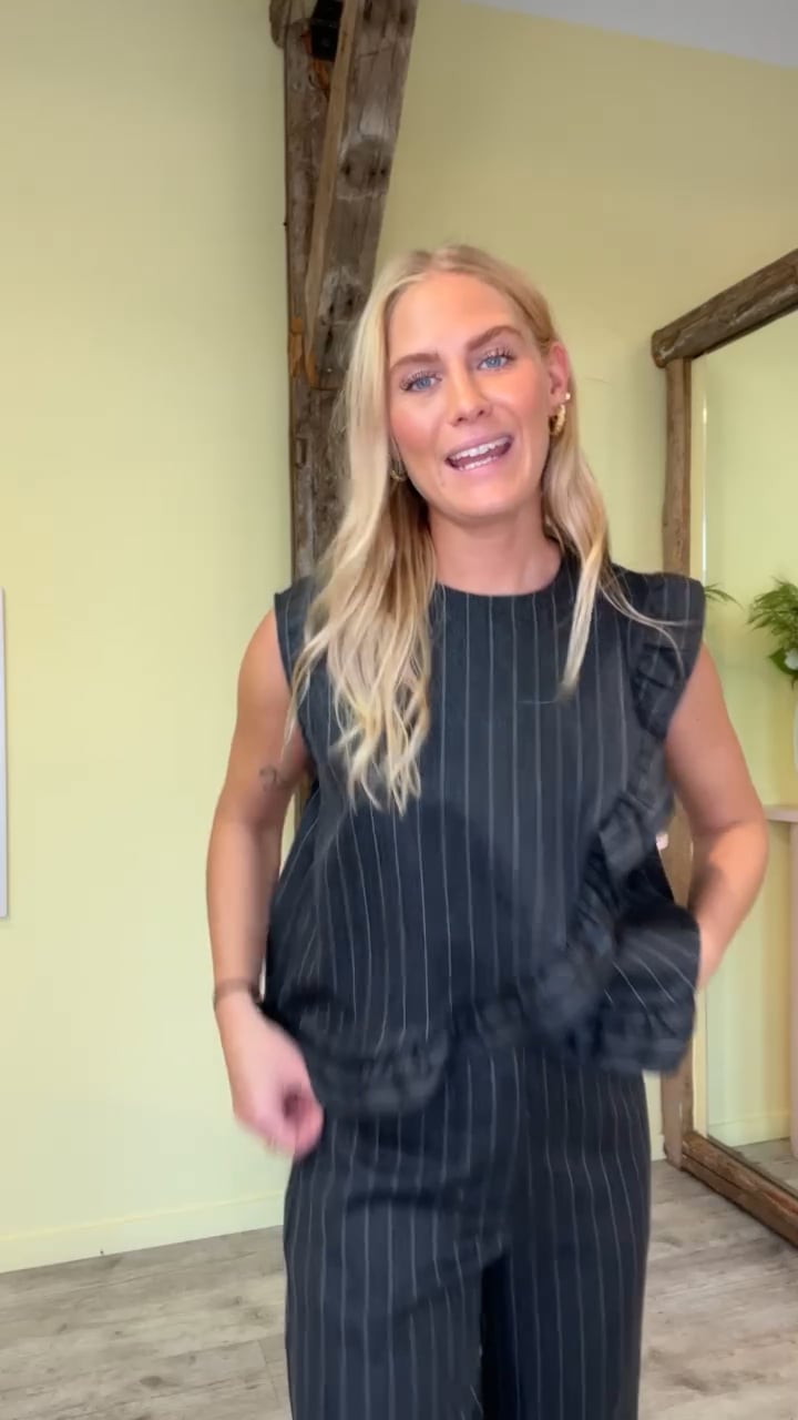 Et par virkelig smarte bukser fra Ichi. Disse bukser har vide ben, en høj talje, skjult knap og lynlås og skrålommer. Bukserne er super smarte til hverdagen - eksempelvis med en strik eller en blazer eller den matchende top!