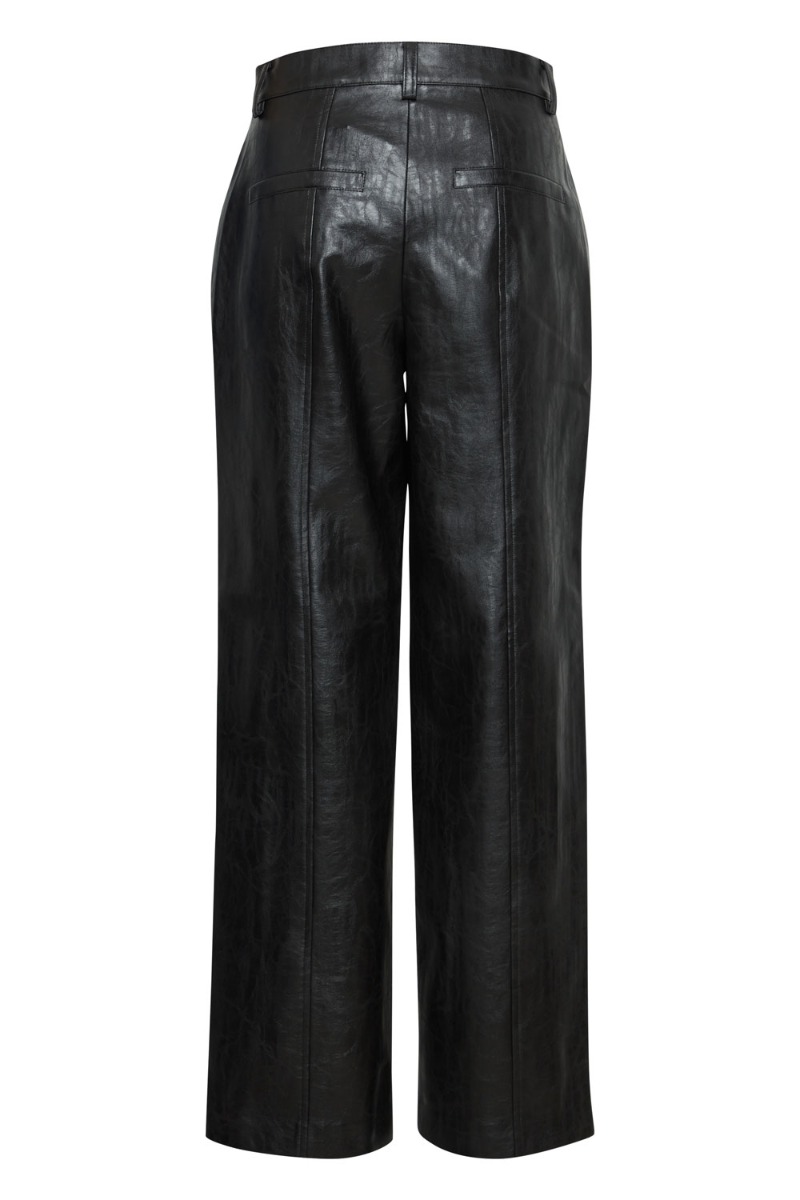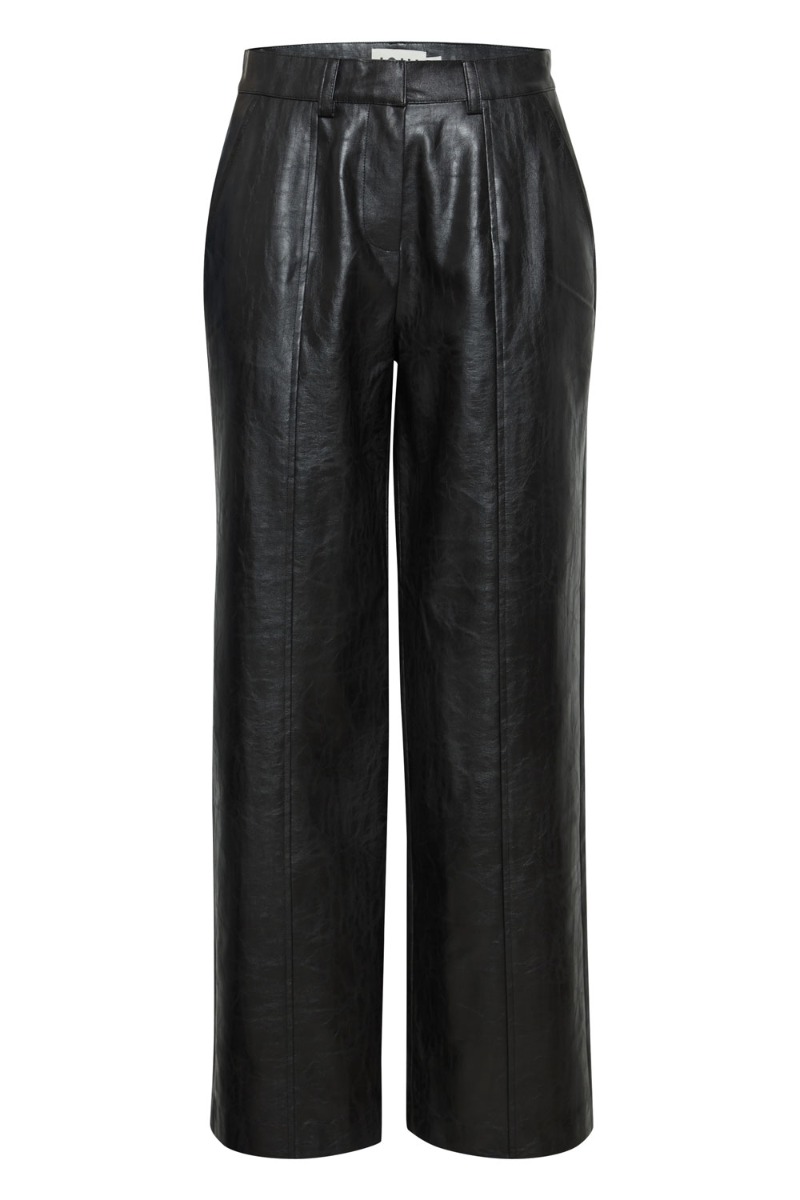OKAY, de sejeste bukser fra Ichi er landet! Bukserne har et læderlook der gør dem mega rå og anvendelige at style til alle anledninger. Bukserne har et løst lige snit med brede ben og fast linning med bæltestropper. Style dem med en oversize strik eller gør dem fine med en blazer og top til fest.