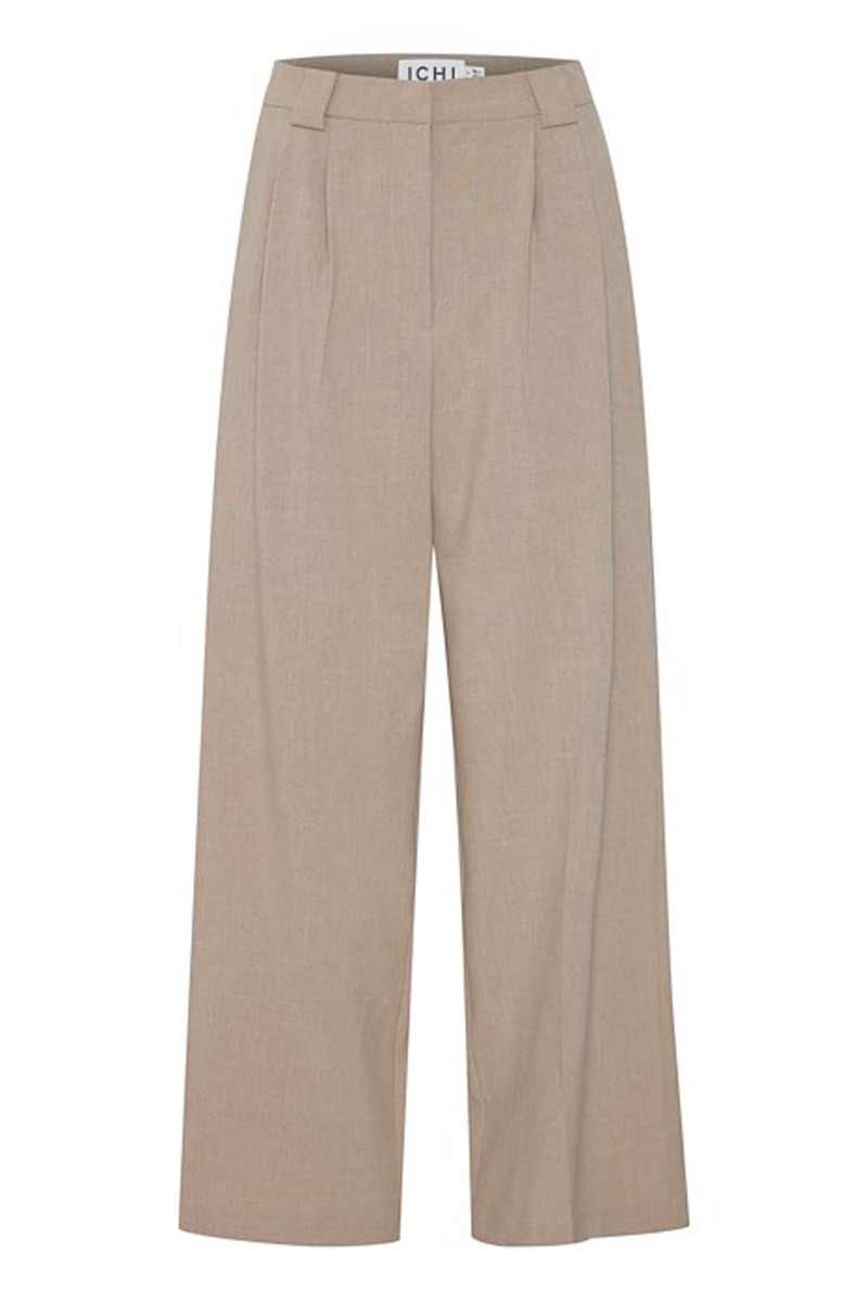 Seje suit-bukser fra Ichi i smuk lysbeige tone. De har et højtaljet fit med fast linning og lommer i siderne. Derudover er de designet i en blød og strækbar kvalitet, så de er helt perfekte at bruge til både hverdag og fest! Der findes en matchende blazer i samme nuance, hvis du ønsker at skabe et samlet suit-look.